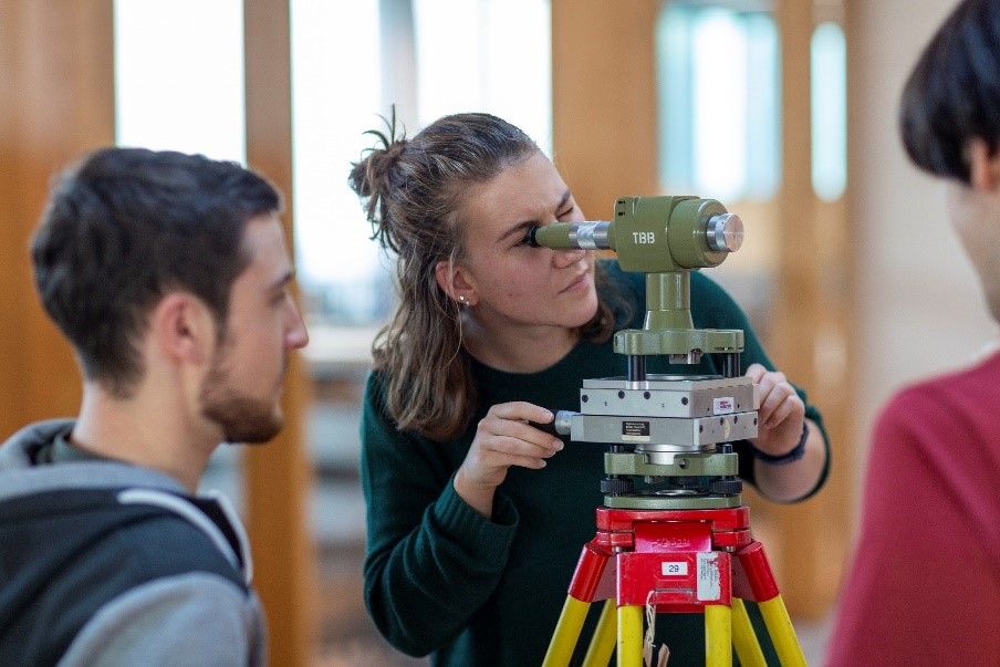 Studierende des Bachelor-Studiengangs Geomatik bei Vermessungen im FHNW Campus Muttenz.