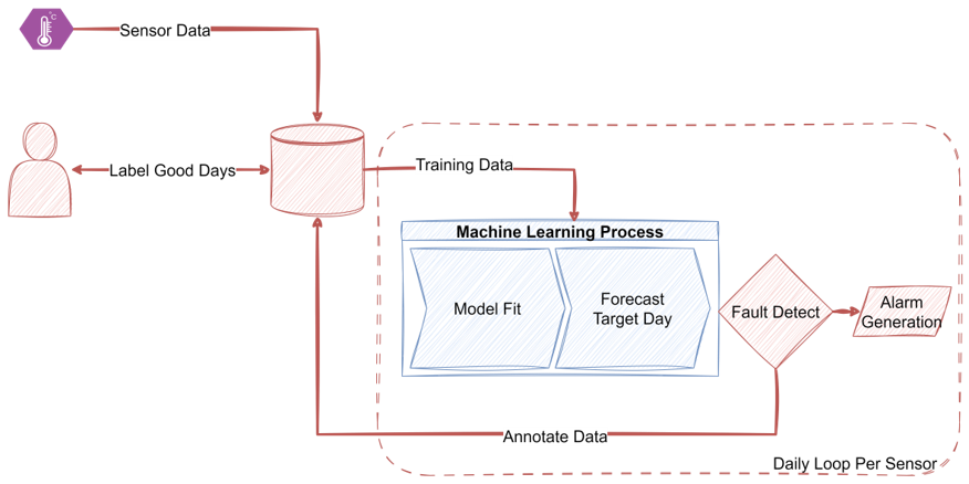 The potential of machine learning (ML) algorithms for fault detection in residential building heating systems is well established in scientific literature including our recent works. We developed a preliminary ML-pipeline, that utilizes time series forecasting to identify faults in a solar thermal system using minimal initial data unlike existing data-intensive approaches. Although the ML algorithm achieves similar accuracies as the rule-based algorithm integrated into the industrial partner’s single-sensor IoT framework, it lacks theoretical testing and conceptual evaluation.