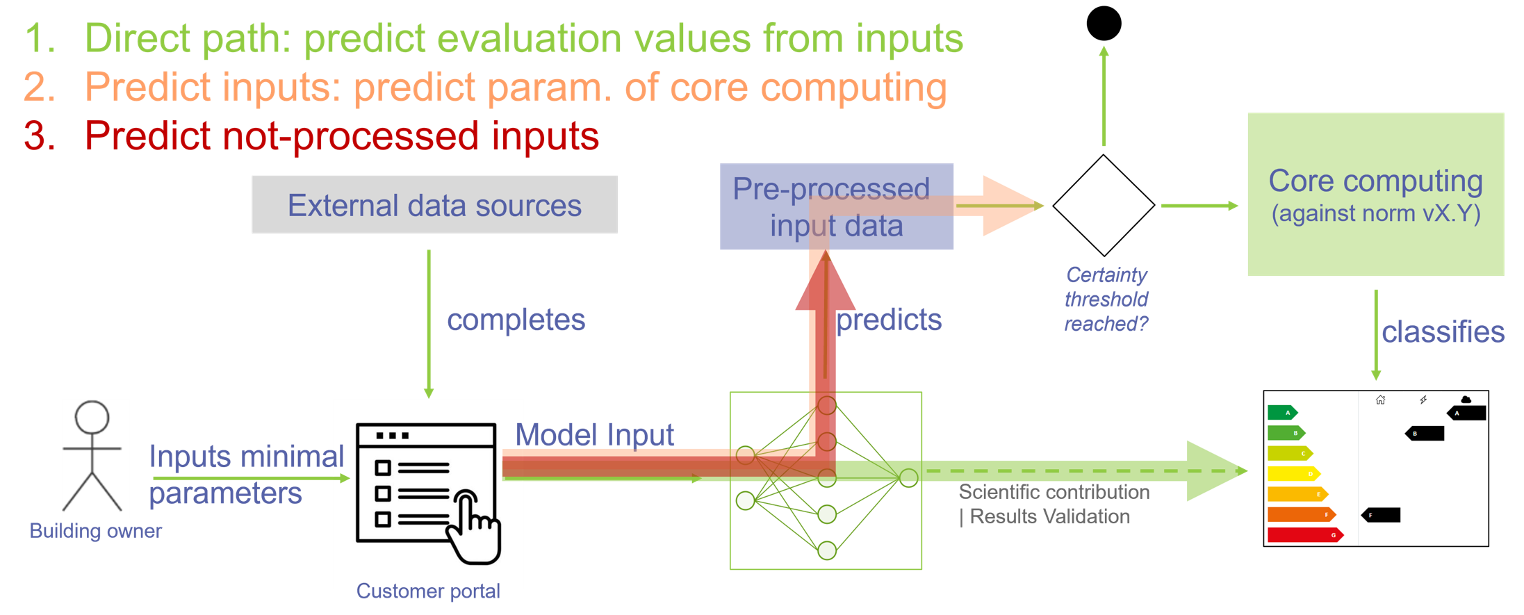 GEAK-Boost hat zum Ziel, den Übergang des Schweizer Gebäudebestands zu energieeffizienten und umweltfreundlichen Technologien und Materialien mithilfe fortschrittlicher Datenwissenschaftstechniken und interdisziplinärer Zusammenarbeit zu unterstützen. Die GEAK-Zertifizierung, die für die Förderung energieeffizienter Gebäudesanierungen unerlässlich ist, stützt sich auf Expertenbewertungen, die komplexe Berechnungen mit Faktoren wie U-Werten und Energiebezugsflächen umfassen. Unter Verwendung eines umfassenden Datensatzes von rund 180'000 Gebäuden zielt das Projekt darauf ab, den Zertifizierungsprozess zu rationalisieren, indem datengestützte Erkenntnisse einbezogen und validierte Modelle entwickelt werden, die nur minimale Eingaben erfordern, die auch von Laien als Gebäudeeigentümer vorgenommen werden können, um den Energiebedarf und die Effizienzklassen von Gebäuden zu schätzen.