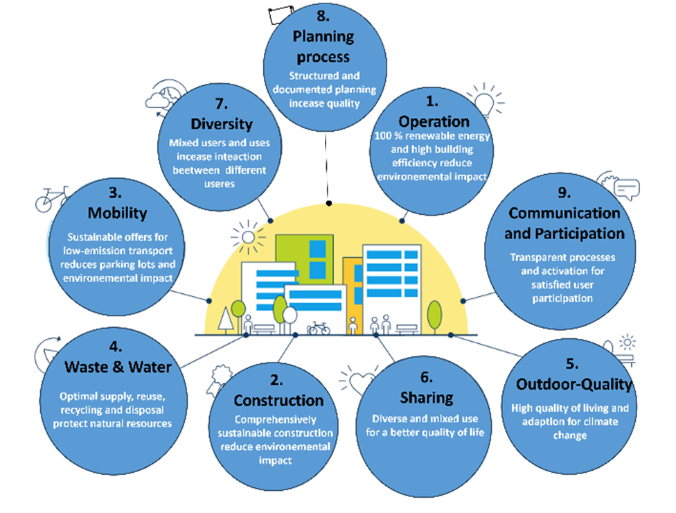Nachhaltige Städte, Quartiere, Areale und Gebäude sowie Infrastrukturen; nachhaltige Bauweisen mit optimierter Gebäudehülle und Statik; Integrale und digitale Planung (Green-BIM, digitaler Zwilling); Entwicklung von Normen und Standards des nachhaltigen Bauens (z.B. Standard Nachhaltiges Bauen Schweiz SNBS).
