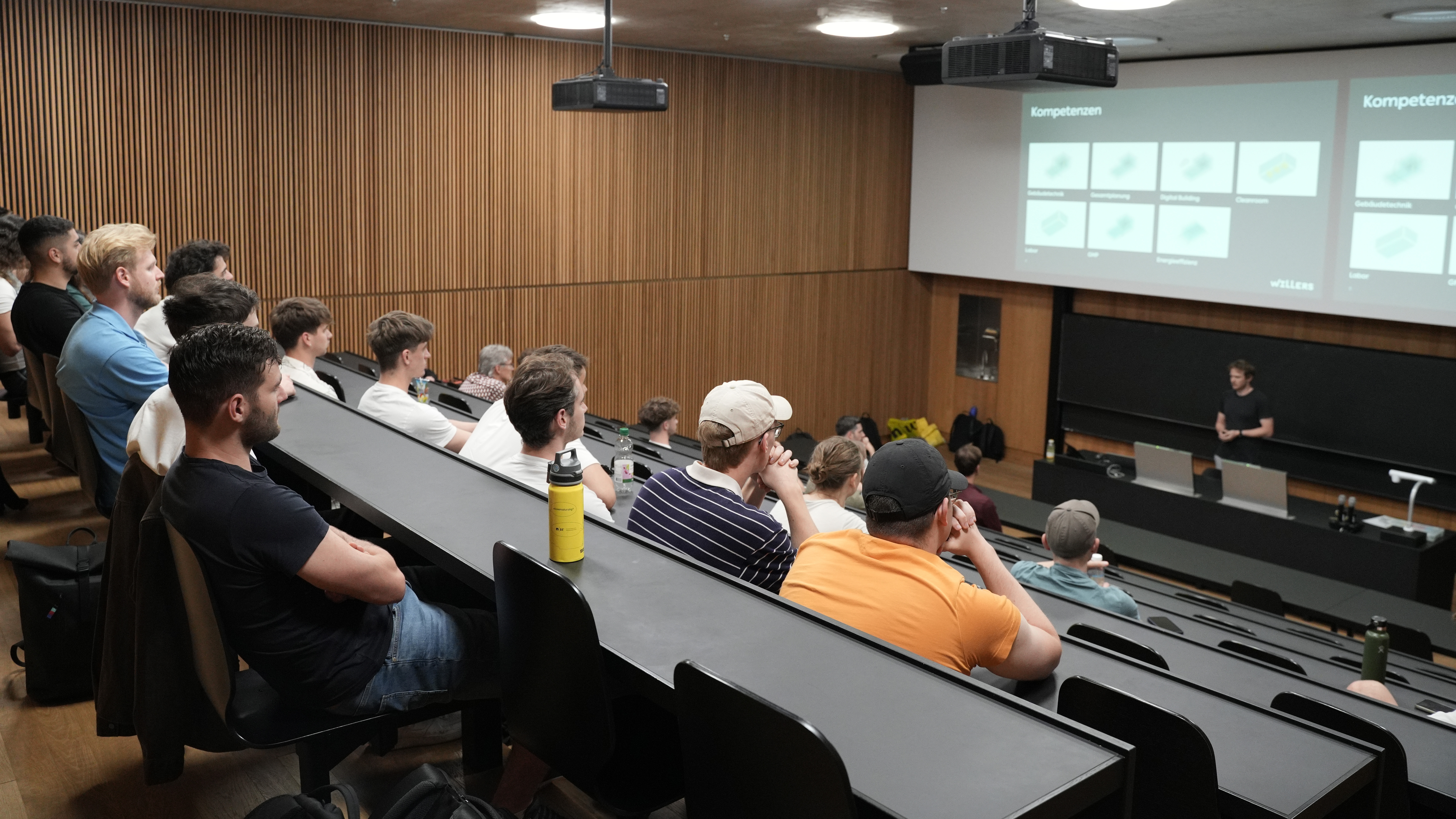 Hier zahlt sich das im Studium erworbene Wissen über HLK-Systeme, erneuerbare Energiesysteme und Energieeffizienz in Gebäuden aus – ergänzt durch individuelle Vertiefungen und praxisnahe Projektarbeit. Die vorgestellten Berufsfelder zeigen, wie vielfältig das Arbeiten in der Gebäudetechnik ist: von HLK-Planung über Gebäudeautomation bis zur Projektleitung für energieoptimierte Neubauten und Sanierungen. Die Präsentierenden machten deutlich, dass es in der Gebäudetechnik nicht nur um Zahlen und Normen geht, sondern auch um Haltung, Teamarbeit und Gestaltungswille.