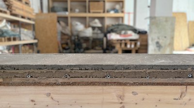 Aufbauend auf dem Forschungsprojekt GreeNest geht upCeiling einen entscheidenden Schritt weiter: Ziel ist die Entwicklung kreislauffähiger Deckenkonstruktionen aus mineralischen Bau- und Abbruchabfällen, für die es kaum Anwendungsmöglichkeiten gibt. Konventionelle Stahlbetondecken sind für ca. 40 % der konstruktionsbedingten CO₂-Emissionen im Gebäude verantwortlich. Hier setzt upCeiling an: Die verwendeten Materialien sollen aus dem Rückbau von Gebäuden gewonnen werden. Das reduziert CO₂-Emissionen, senkt die Ressourceninanspruchnahme und setzt Abfallstoffe in Wert. Für die Tragstruktur soll leimfreies Altholz eingesetzt werden. Für die oberen Schichten ist ein Lehmunter- bzw. -oberboden auf Basis von mineralischen Bau- und Abbruchabfällen vorgesehen. Diese Bauweise erhöht die Reparatur- und Wartungsfreundlichkeit sowie die Kreislauffähigkeit der Decke. Das Projekt wird auch mit freundlicher Unterstützung des IG Lehm (Fachverband der Schweiz) und Christine Löffler durchgeführt.