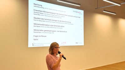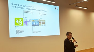 Dr. Carina Alles, Leiterin der Abteilung Energie des Kantons Basel-Stadt, erläuterte, wie Basel-Stadt die Dekarbonisierung der Wärmeversorgung seit einigen Jahren systematisch vorantreibt – von der Transformation der Fernwärme über den Ausstieg aus der Gasversorgung bis zur Förderung erneuerbarer Heizsysteme.