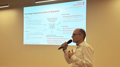 Christoph Plattner, Leiter Ressort Energie des Kantons Basel-Landschaft, zeigte auf, wie der Kanton den schrittweisen Ausstieg aus der fossilen Wärme vorbereitet: mit Förderinstrumenten, Beratung, neuen Regeln beim Heizungsersatz und einer engeren Zusammenarbeit zwischen Gemeinden und Energieversorgenden.