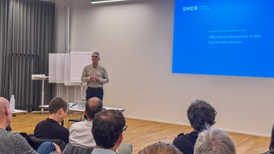 Reto Rigassi von der ENCO Energie-Consulting AG brachte die Planungsperspektive ein. Er zeigte, dass Energieplanung heute über das einzelne Grundstück hinausgehen muss. Quartiere und Gemeinden bilden die relevante Ebene, um Wärmeverbünde, Fernwärmeanschlüsse und individuelle Lösungen sinnvoll zu kombinieren. Entscheidend sind dabei: