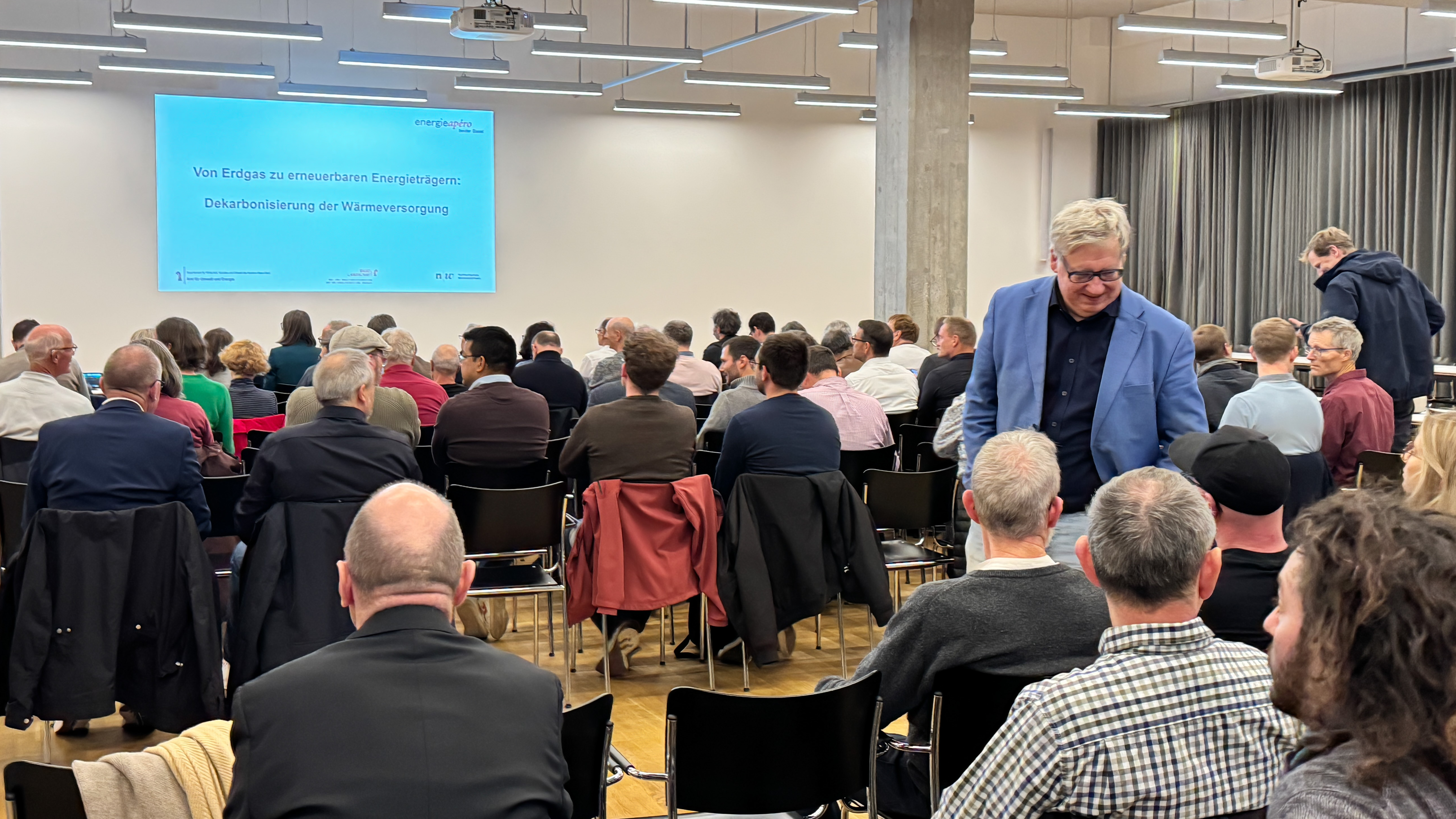 Von Fernwärme in der Stadt bis zu Nano-Grids und lokalen Verbundsystemen in Quartieren: Effiziente Wärme entsteht dort, wo Gebäude ihre Infrastruktur teilen und erneuerbare Quellen gemeinsam nutzen.Der Multifunktionsraum des Bau- und Verkehrdepartements Basel-Stadt war bis auf den letzten Platz gefüllt – ein deutliches Zeichen dafür, dass die Dekarbonisierung der Wärmeversorgung zu den drängendsten Aufgaben der regionalen Energieplanung gehört.