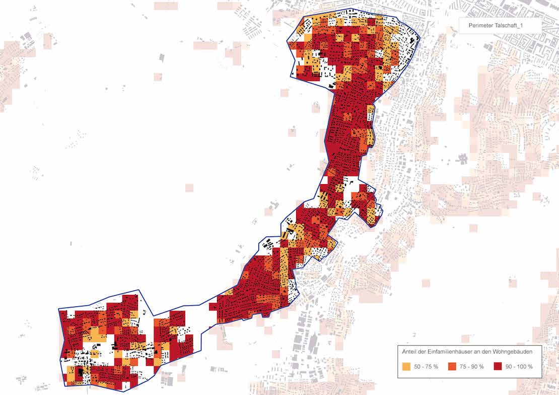 Auswahl der analysierten Perimeter anhand des Anteils von Einfamilienhäusern an den Wohngebäuden