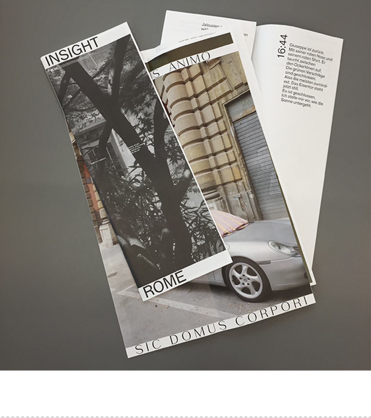 Während der von Harald R. Stühlinger und Susanne Vécsey organisierten, interdisziplinären Summer School «Learning from Rome» des Instituts Architektur der FHNW brachten die Teilnehmenden ihre Analyse des Sozialwohnbaukomplexes ICP Flaminio II zur Darstellung. In Zusammenarbeit mit dem Fotografen Giaime Meloni und der Grafikerin Philomène Hoël entstand am Ende der Woche, welche die Studierenden und Dozierenden am Schweizer Institut in Rom verbringen durften, die Publikation «Insight Rome», in der Zeichnungen, Fotos und Texte vereint sind.