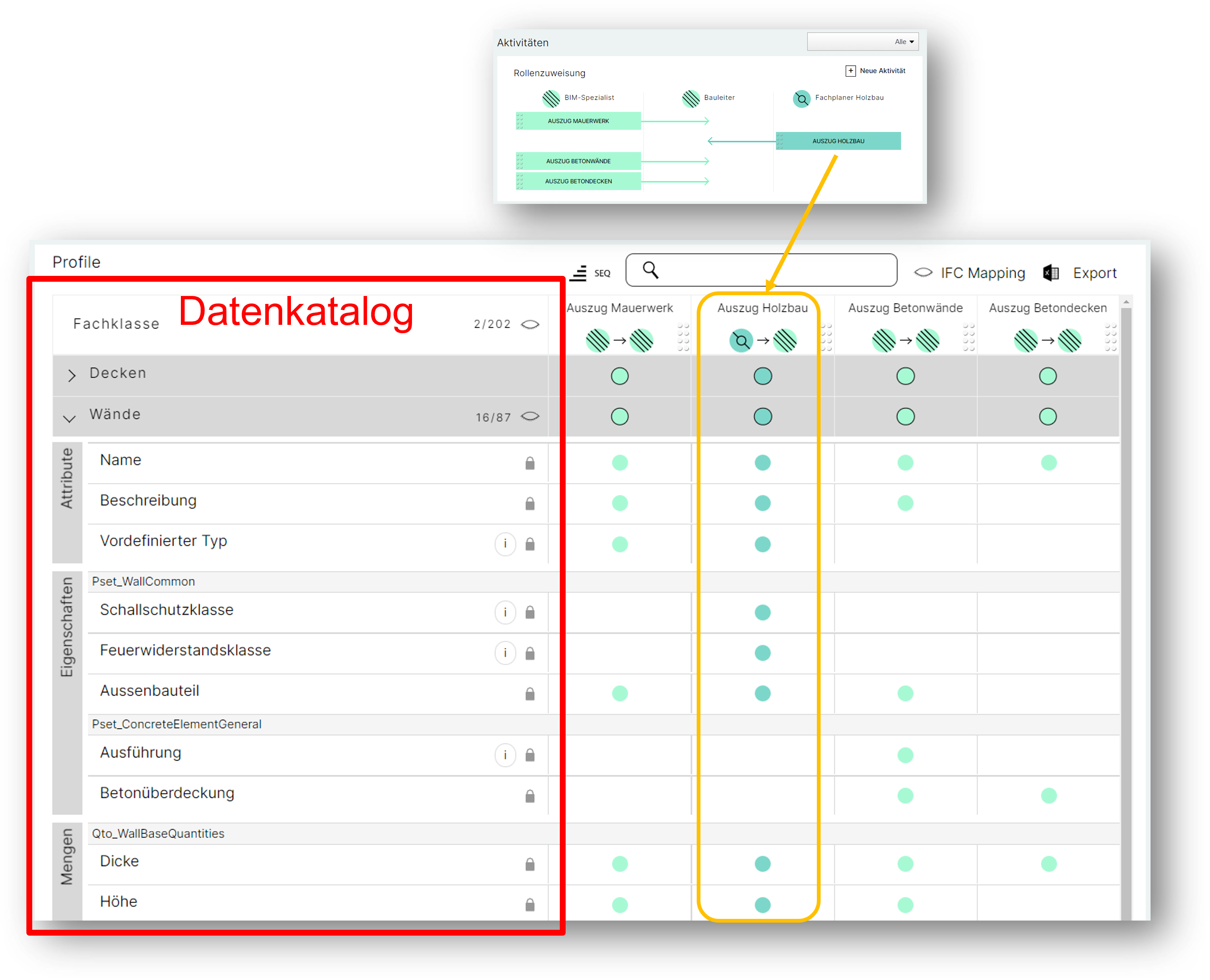 Als Teil der Applikation BIM-Profil-Server wird auch ein Referenzkatalog aufgebaut, in welchem das Branchenwissen harmonisiert und standardisiert verfügbar gemacht wird.