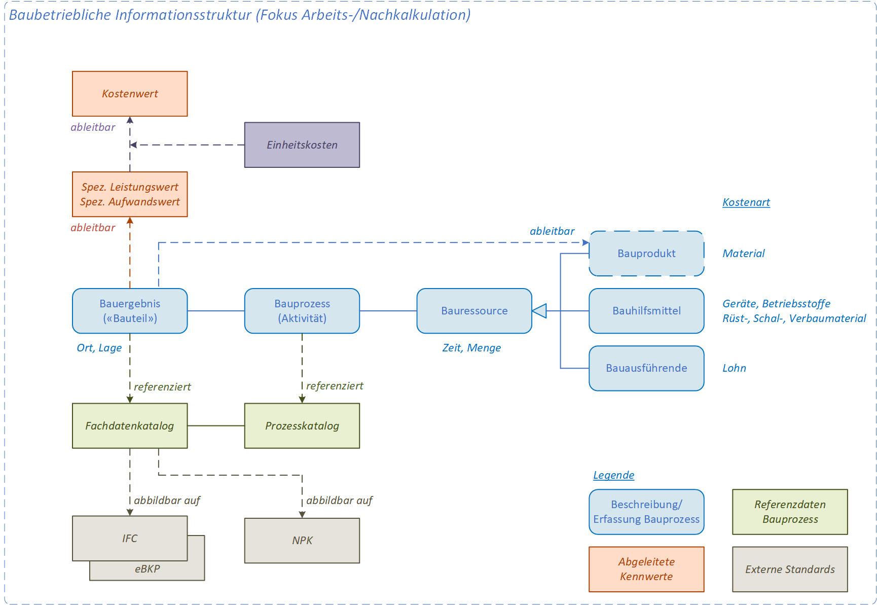 - Entwicklung einer bauteilorientierten Planung, die über alle Projektphasen (Planung, Disposition, Ausführung/Rapportierung, Kalkulation) die Durchgängigkeit der Leistungs- und Kostenstrukturen aufzeigt und prototypisch implementiert. Der Prototyp bildet die detektierten Schlüsselaktivitäten auf die korrespondierende Bauteilstruktur ab und ermöglicht die Visualisierung und Analyse der Bauaktivitäten.