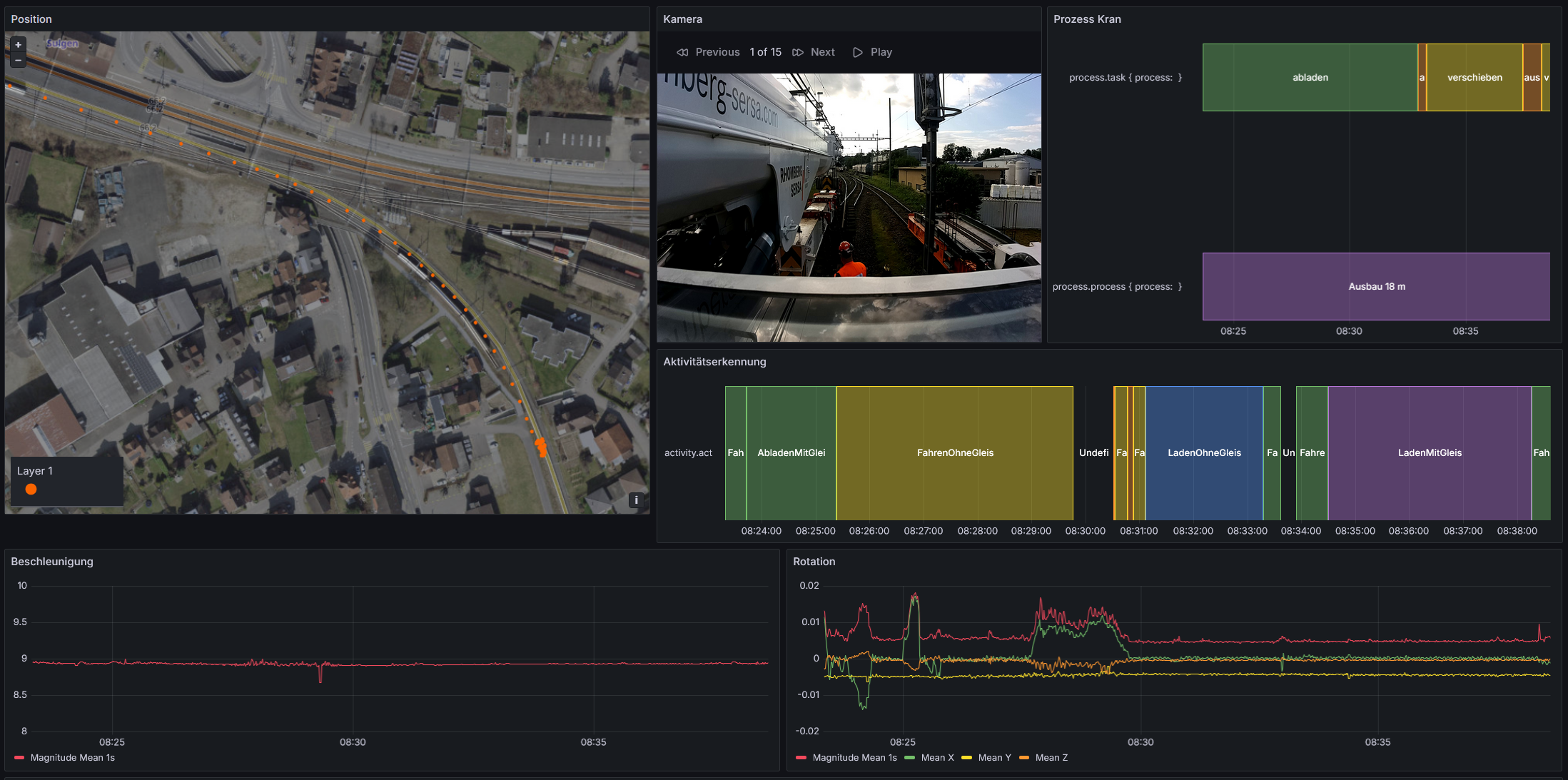 Ziel des Innovationsprojektes RSRG-RTCM ist die Entwicklung eines Systems für die automatisierte Echtzeiterfassung des Baufortschritts auf Gleisbaustellen. Auf Basis von intelligenten Sensoren in Kombination mit smarten Algorithmen werden die wichtigsten Bauaktivitäten in Echtzeit erfasst und dem/der Bauführer*in relevante Informationen zum Baufortschritt und einer allfälligen Planabweichung zur Verfügung gestellt. Somit können Verantwortliche der Gleisbaustelle Engpässe frühzeitig erkennen, wie z. B. ein Gleiskran, der das Gleis noch nicht wegtransportiert hat und damit zu einem potenziellen Produktivitätsrückgang der nachfolgenden Prozesse führt.