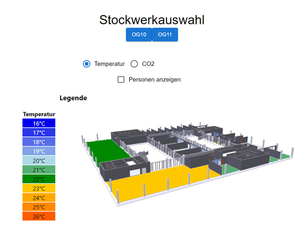 Im Rahmen des «Shadow»-Projekts wird untersucht, wie BIM-Modelle und Daten von Sensoren, die auf dem Campus installiert wurden, auf einer offenen Plattform visualisiert werden können. Zudem wird analysiert, wie Personen in Räumen mithilfe von Machine Learning lokalisiert werden können, um Informationen über den Status und die Belegung von Räumen (fast) in Echtzeit zu erhalten.
