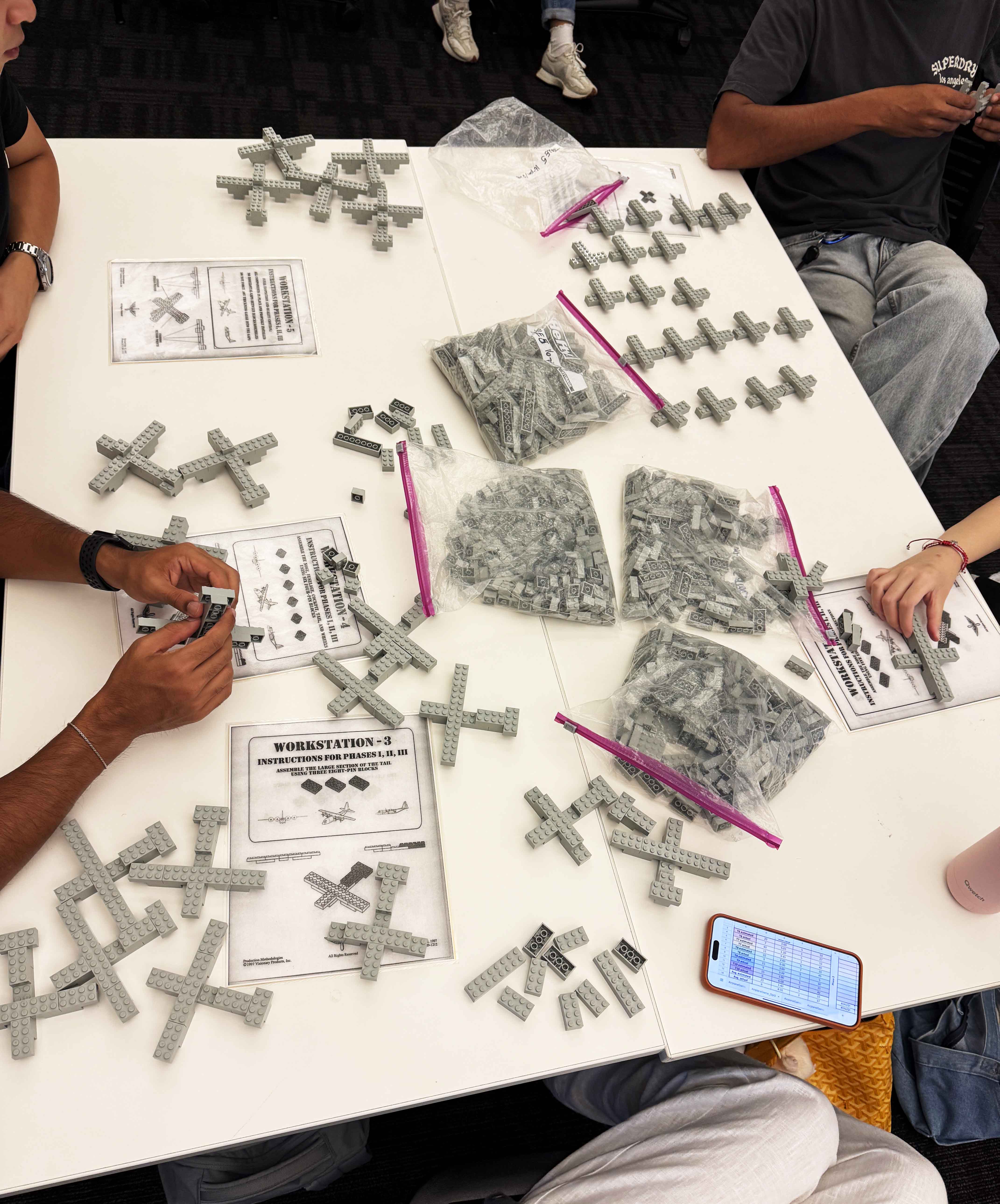 Patrick beschreibt insbesondere den Donnerstag als inhaltlichen Schwerpunkt. Eine spielerische Simulation von Push- und Pull-Prinzipien anhand einer Lego-Produktionslinie ermöglichte einen praxisnahen Zugang zu Lean-Mechanismen. Dabei liessen sich sowohl Prozessdynamiken als auch Gruppeninteraktionen gut beobachten.