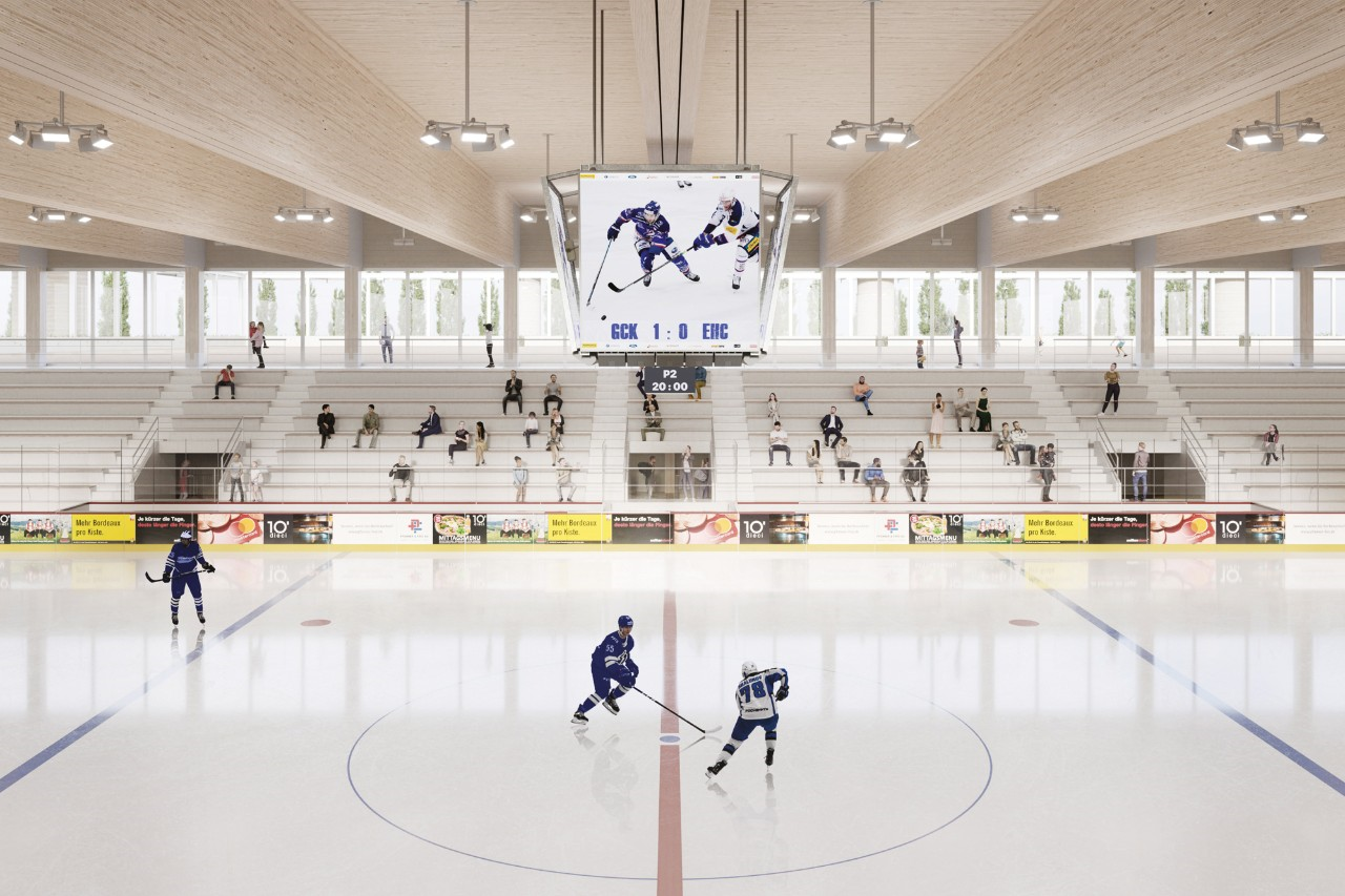 Erste Einblicke in ihren künftigen Einsatz ermöglichen zwei Visualisierungen der geplanten Holzkonstruktionen, die das Erscheinungsbild des zukünftigen Sportzentrums massgeblich prägen werden. Wir halten euch gerne über den Fortschritt der Prüfungen auf dem Laufenden und informieren darüber, wie sich die Holzträger bewähren.