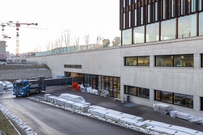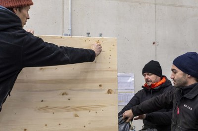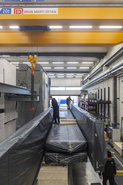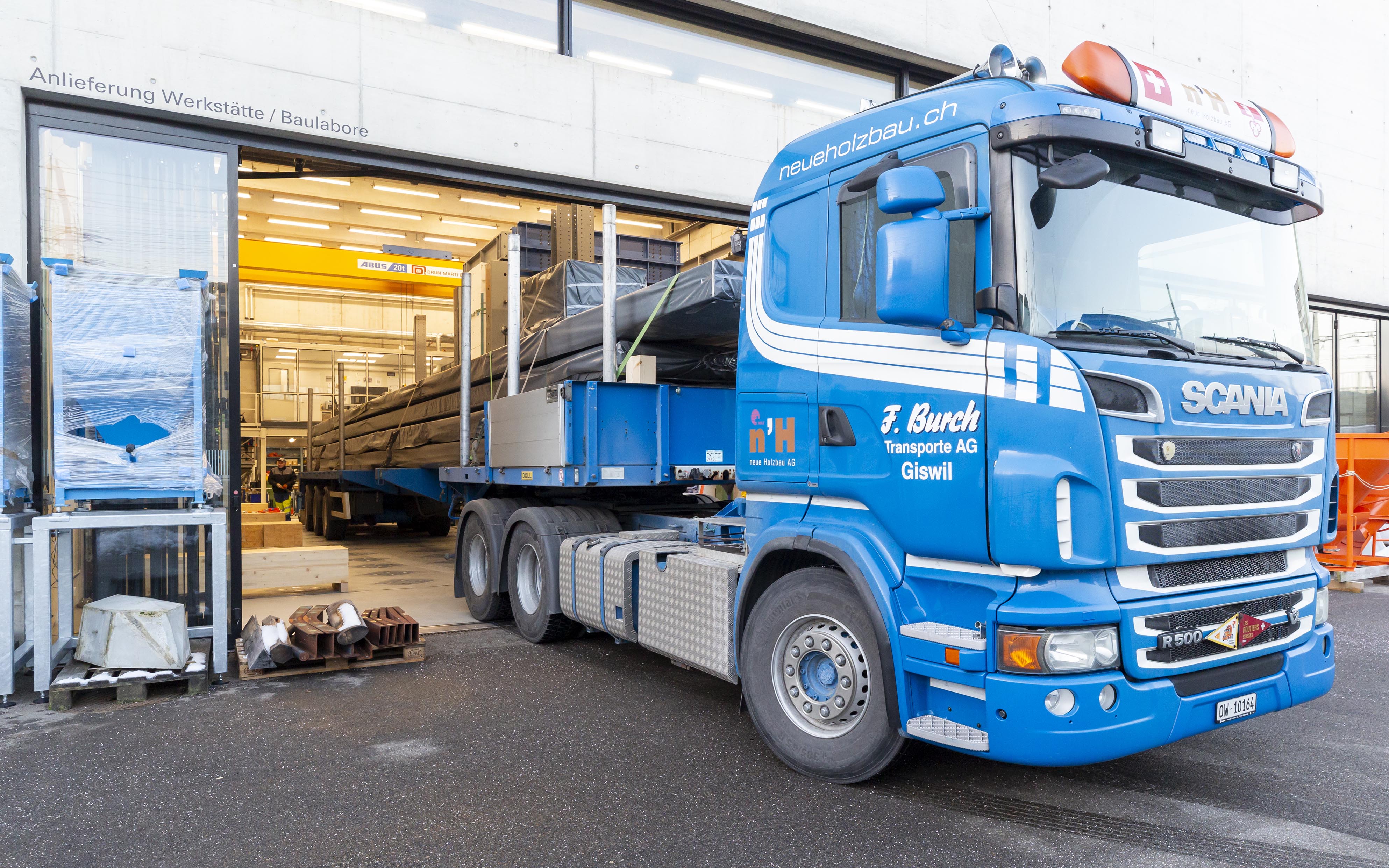 Das Team des Baulabors FHNW steht vor einer neuen spannenden Aufgabe: Gestern wurden vier Holzträger mit einer beeindruckenden Länge von 25 Metern und einer Höhe von 1,40 Metern geliefert, die nun im Baulabor vorgespannt und auf ihr Tragverhalten hin untersucht werden.