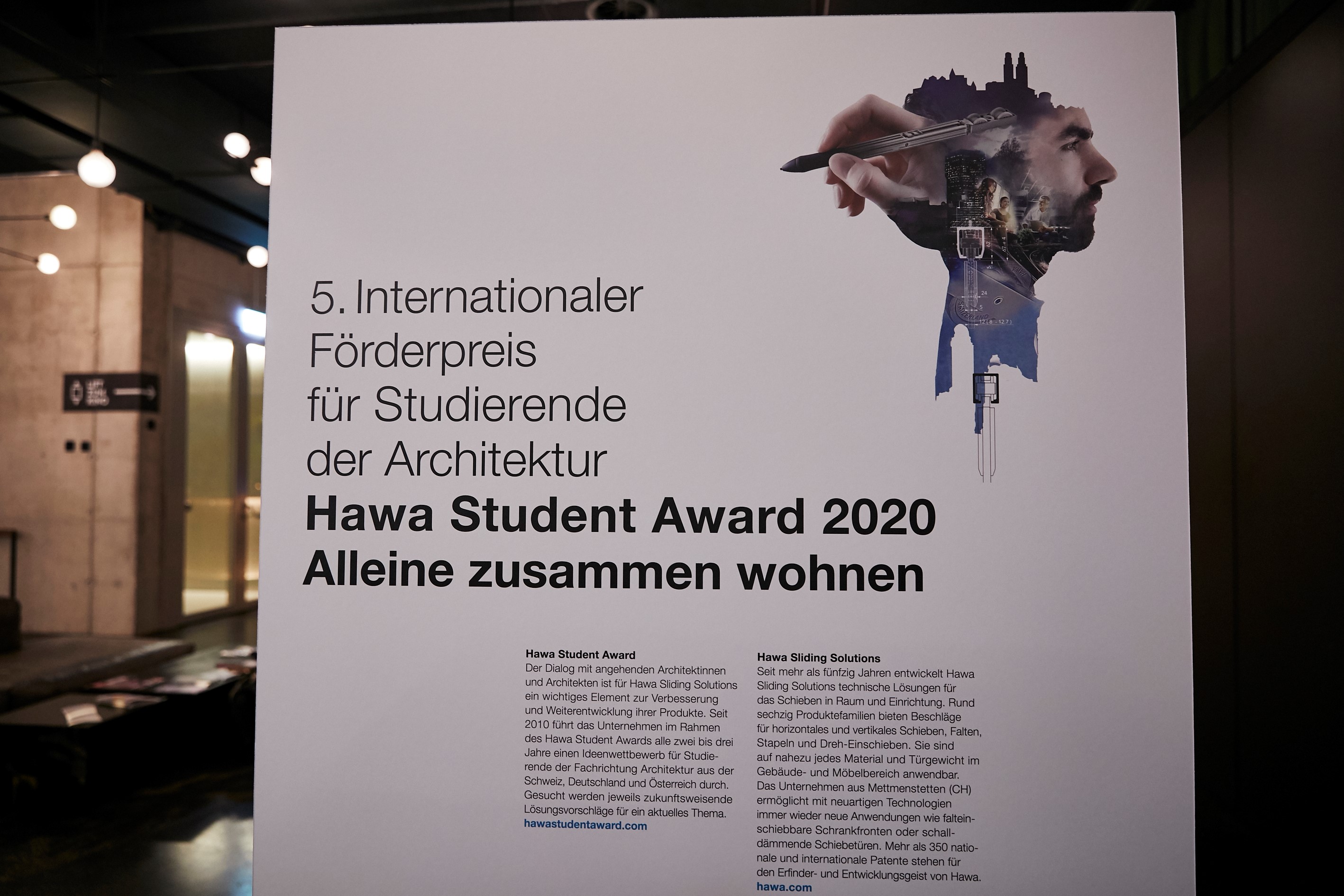 Der Förderpreis für Studierende der Architektur aus der Schweiz, Österreich und Deutschland wird seit 2010 von der Hawa Sliding Solutions verliehen. 2020 hatten die Wettbewerbsteilnehmenden die Aufgabe, für das rund 7000 Quadratmeter grosse Fernbus-Areal im Zentrum von Zürich 250 bis 300 "Microliving"-Apartments innerhalb eines oder mehreren Wohngebäuden zu entwerfen und den Busbahnhof im Erdgeschoss zu integrieren. Mehr zum Hawa Student Award finden Sie hier.