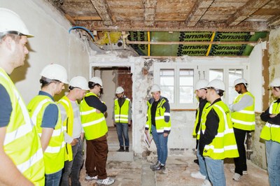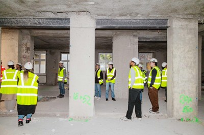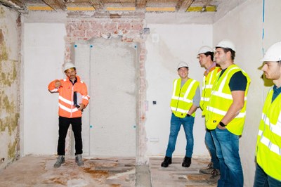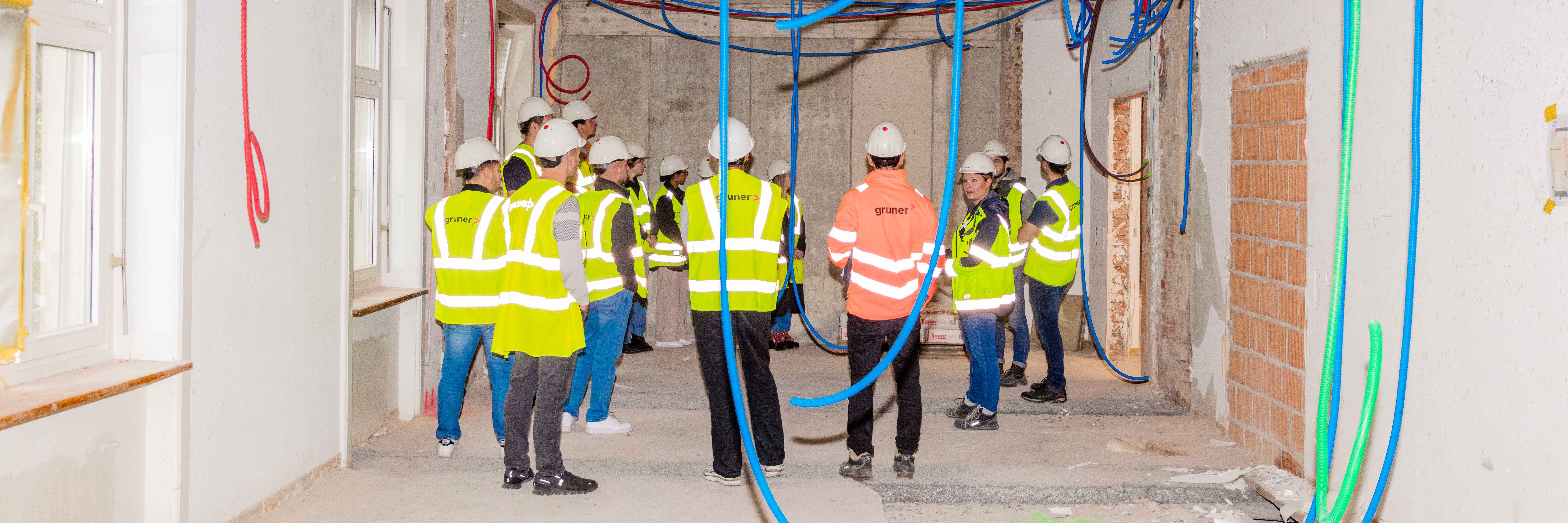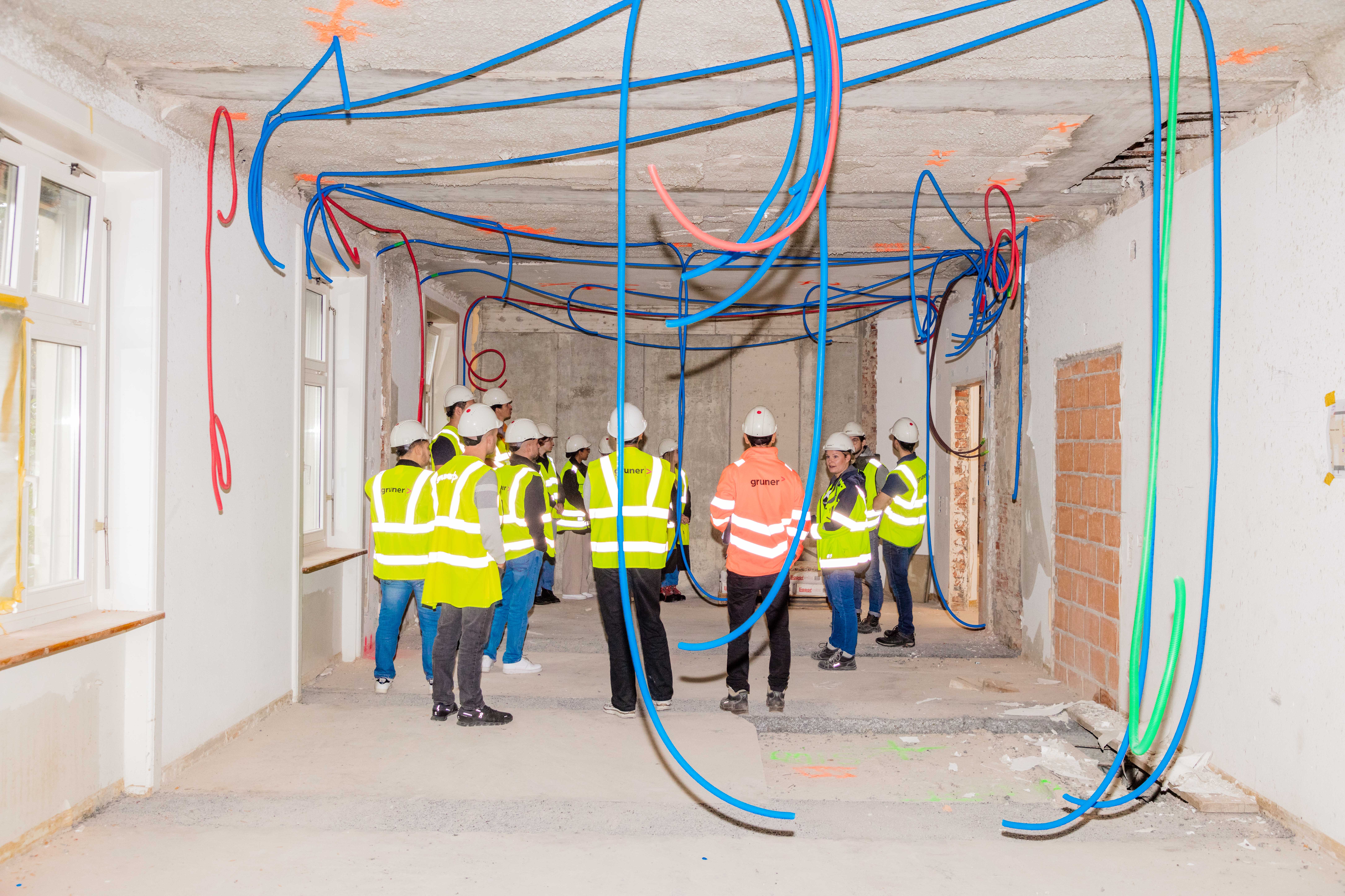 Auf der Baustelle der Gruner AG konnten sich die Studierenden im Bachelor of Science in Bauingenieurwesen mit den baulichen Herausforderungen und Lösungen vertraut machen, die erforderlich sind, um dieses historische Gebäude in ein modernes Mehrgenerationen-Wohnhaus mit öffentlichen Bereichen wie einem Café zu transformieren.