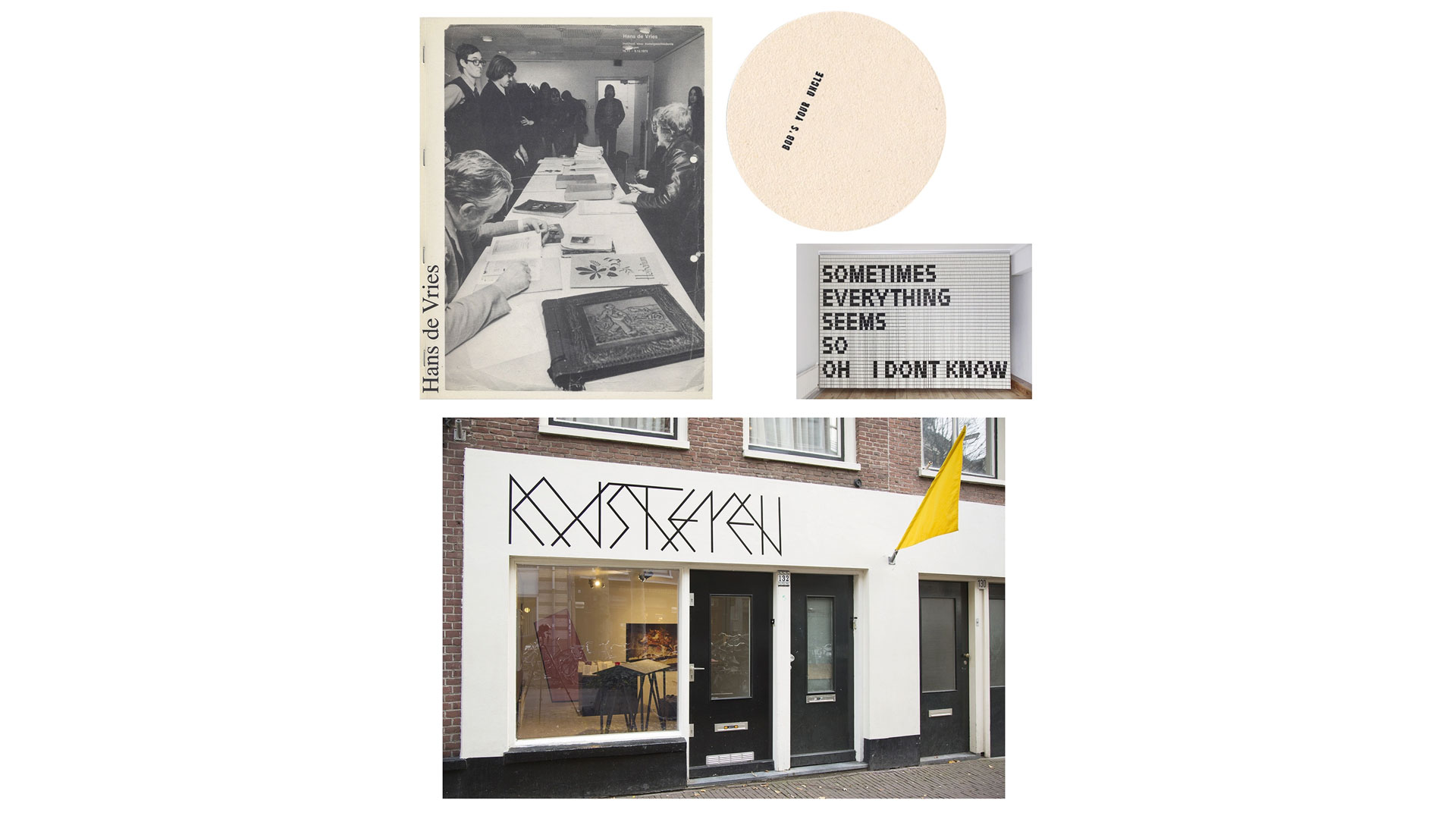 Für den 2009 gegründeten Amsterdamer Kunstverein hat Marc Hollenstein in den vergangenen 15 Jahren verschiedene Projekte, Flyer, Newsletter, Beschilderungen, Interventionen und Publikationen produziert. Die anfänglich definierte Sprache ist durch eine radikale Reduktion gekennzeichnet: ein handgeschriebener Briefkopf, die Verwendung der Schriftart Arial und eine überwiegend schwarz-weisse Farbgebung, die sich auf einem Laserdrucker leicht und just-in-time reproduzieren lässt. Diese begrenzten, aber praktikablen Elemente wurden konsequent angewandt - obwohl es bei jeder Ausgabe immer möglich war, über diese Basis hinaus zu improvisieren.