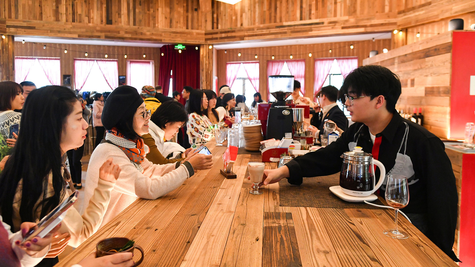 Mit der Pop-up-Bar «Swiss Chalet» in Peking lancierte die Schweizer Botschaft das 75-Jahre-Jubiläum der diplomatischen Beziehungen zwischen der Schweiz und China im Jahr 2025. Das Outfit-Design wurde von Lou Gattlen, Alumna der HGK Basel, entworfen.