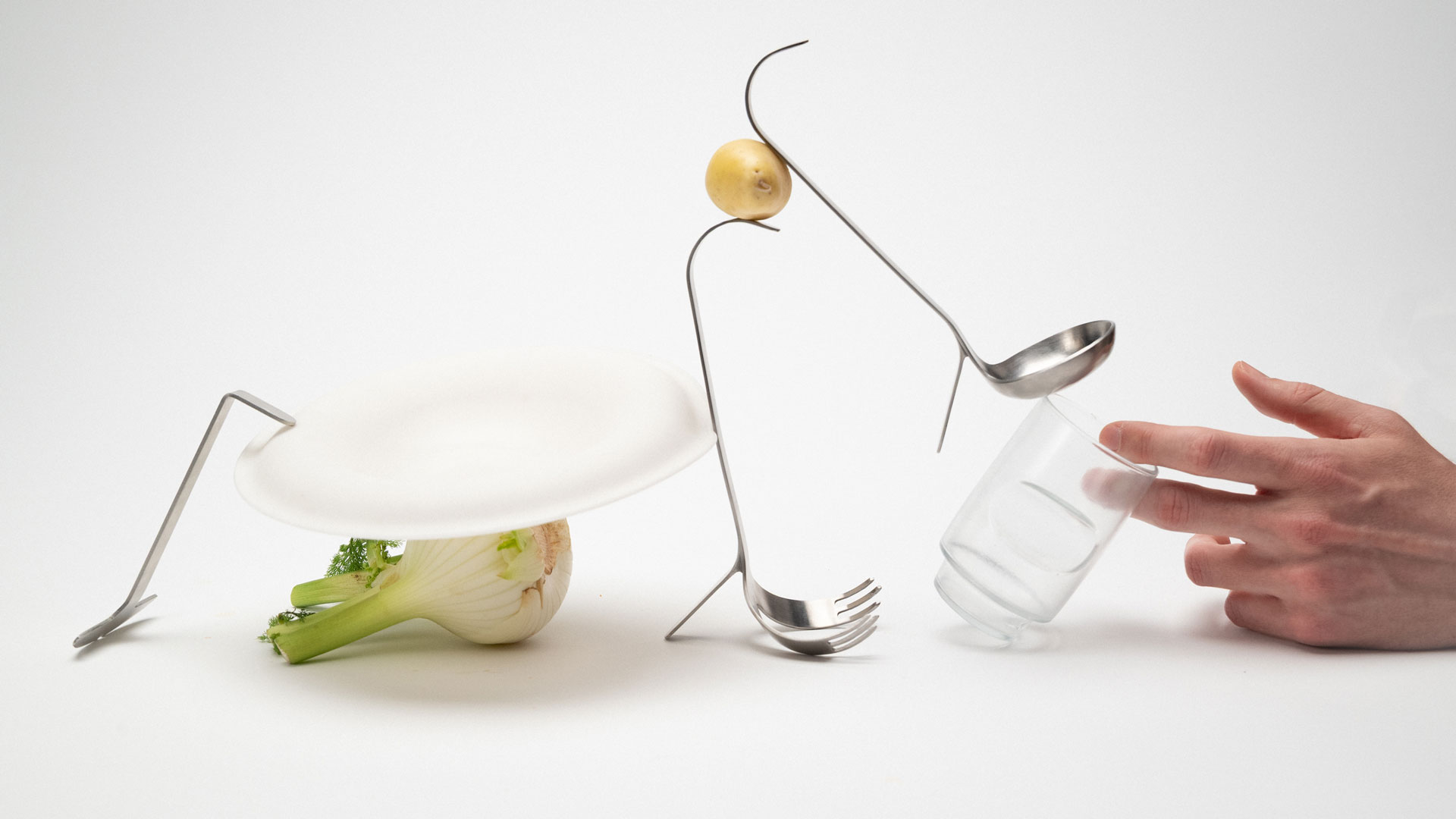 Trotz seiner geringen Grösse spielt der Daumen eine zentrale Rolle in unserem Leben, ist für viele technische Errungenschaften unerlässlich und markiert einen Wendepunkt in der menschlichen Evolution. «No Spare Wheels» von Thomas d'Enfert, Studierender im Masterstudio Industrial Design am Institute Contemporary Design Pratices (ICDP) der HGK Basel, ist eine Einladung zum Abendessen, bei der die Teilnehmer die Entwicklung ohne Daumen erkunden können.