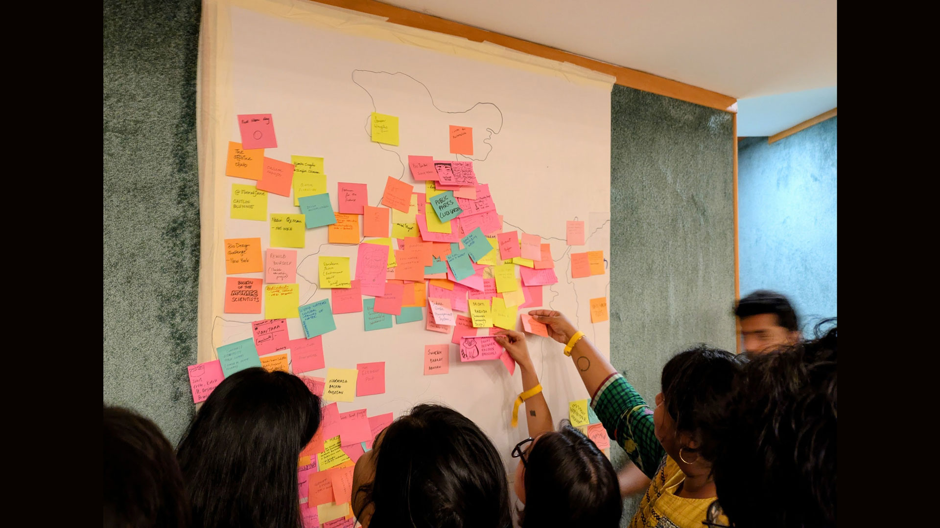 In diesem Rahmen führte Prof. Dr. Kit Braybrooke Feldforschungen und Rundtischgespräche mit Gemeinschaften durch, die in Delhi und Goa an vorderster Front gegen den Klimawandel kämpfen. Zudem veranstaltete Kit einen Community-Mapping-Workshop am ersten What Design Can Do-Festival in Indien mit dem Titel «Calling all hackers and makers for climate! <3!», der mit über 80 Change-Maker:innen komplett ausgebucht war, darunter auch Studierende von The Design Village.