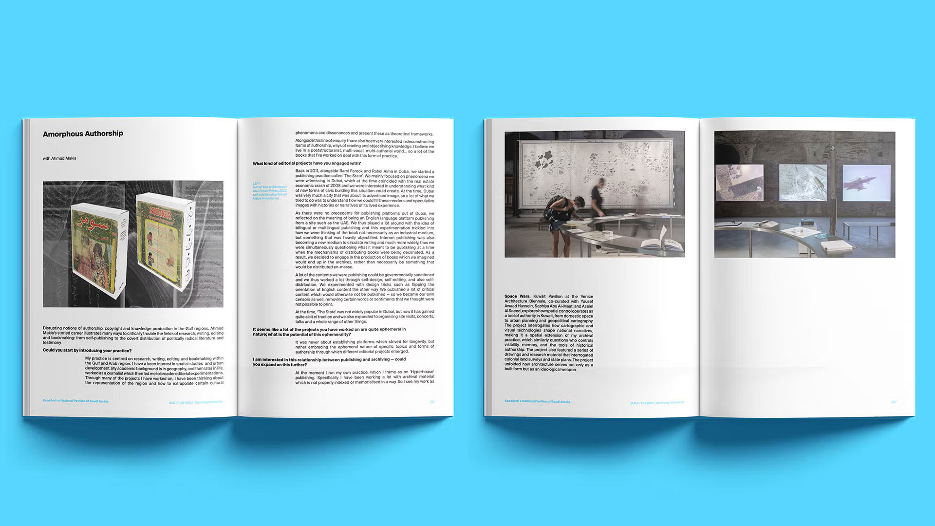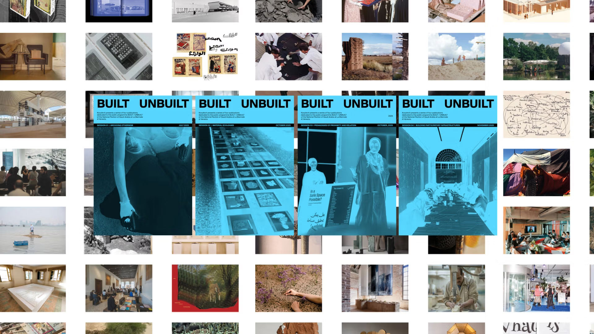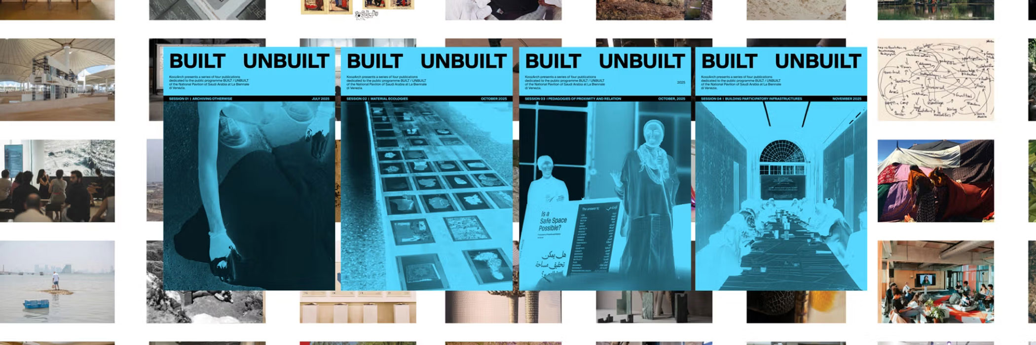 Der Reader BUILT / UNBUILT ist ein redaktionelles Projekt, das von KoozArch entwickelt wurde, um das von Beatrice Leanza kuratierte öffentliche Vortragsprogramm für den Pavillon Saudi-Arabiens auf der 19. Internationalen Architekturausstellung in Venedig zu begleiten. Das Projekt wurde sowohl als Dokumentation als auch als Erweiterung des Programms konzipiert und umfasst eine Reihe von vier speziellen Lesebüchern, die die Beiträge der öffentlichen Begegnungen sammeln, erweitern und kritisch einordnen. Die Reader vereinen die Stimmen, Positionen und Praktiken, die während vier öffentlicher Gespräche zwischen Juni und November 2025 im Pavillon und im Palazzo Diedo in Venedig zum Ausdruck kamen.