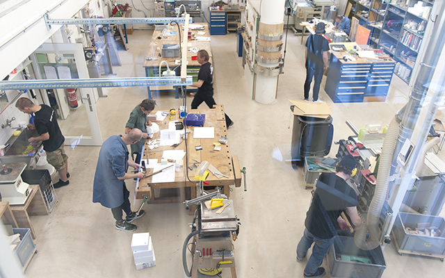 Ein Team aus Tutor:innen, die alle einen handwerklichen Hintergrund haben, betreuen die Studierenden in der «offenen Werkstatt». Nach dem bestandenen Einführungskurs für eine Werkstatt, können Studierende selbstständig oder mit Unterstützung der Werkstattleitenden Studienprojekte in dieser Werkstatt umsetzen.