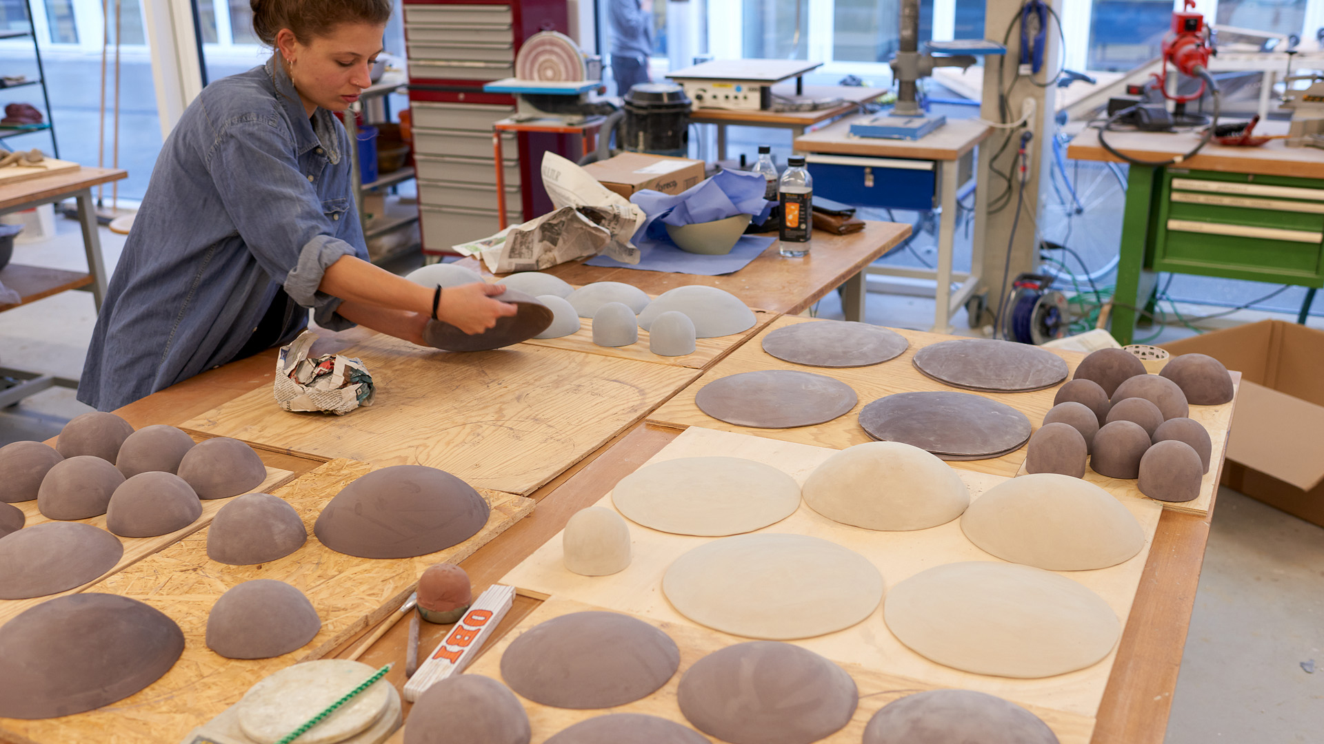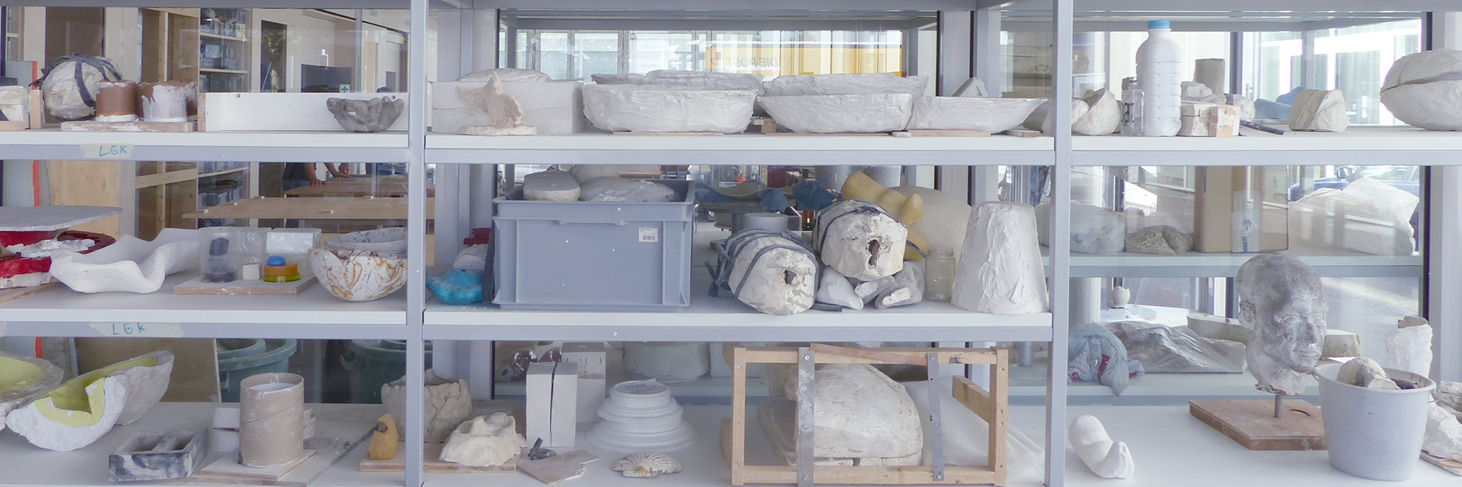 Die Studierenden arbeiten zum Beispiel an Skulpturen, Objekten & Installationen, an Modellen, an architektonischen Modellen sowie an Körperabformungen und Accessoires. In der Bildhauerwerkstatt Basiswissen wird der Umgang mit räumlichem Gestalten erprobt.
