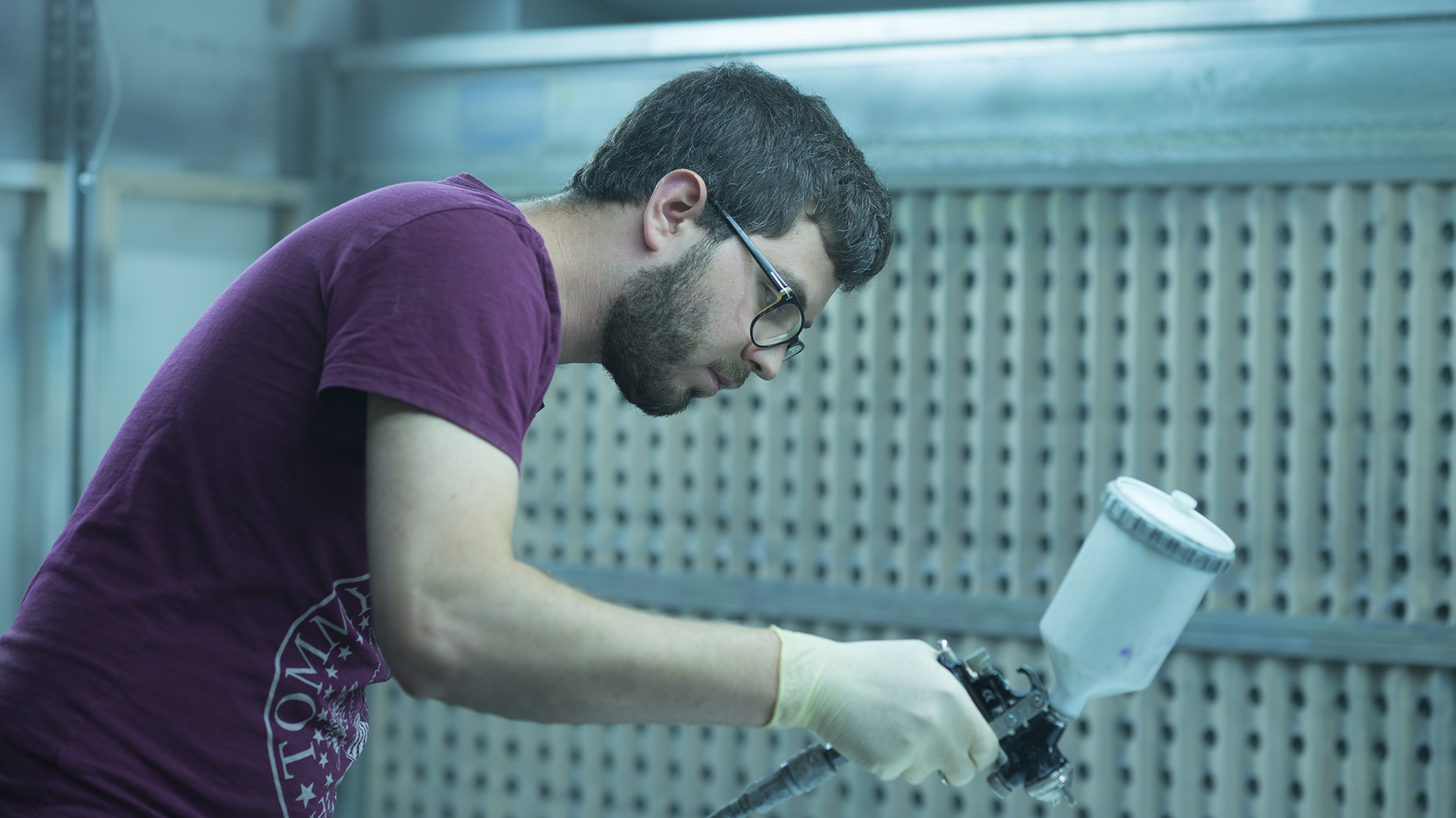 In der Lackierwerkstatt können die Studierenden ihre Design- oder Kunstobjekte farblich gestalten.