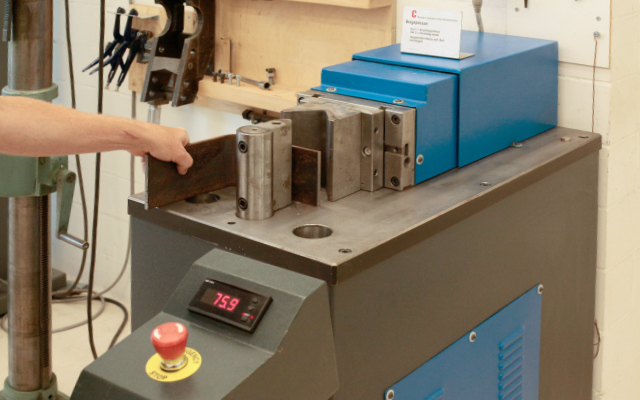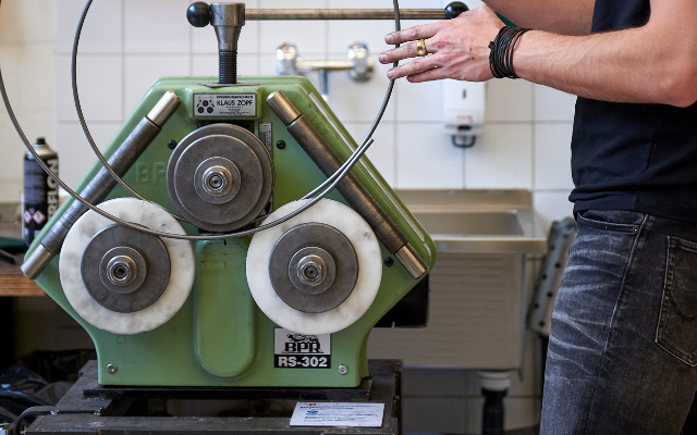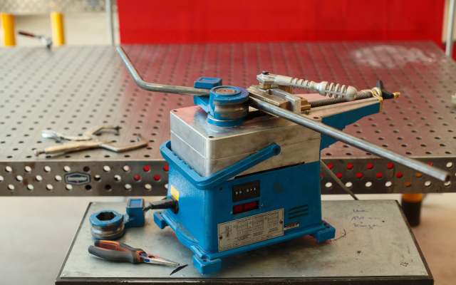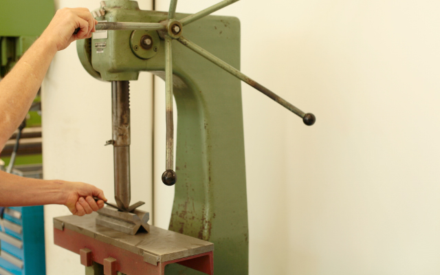 Flachstähle und dickwandige Rohre können auf der Biegepresse mit 10 Tonnen Druck in Form gebracht werden.