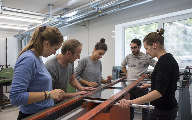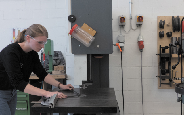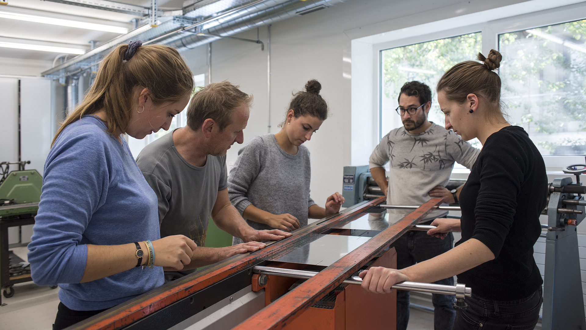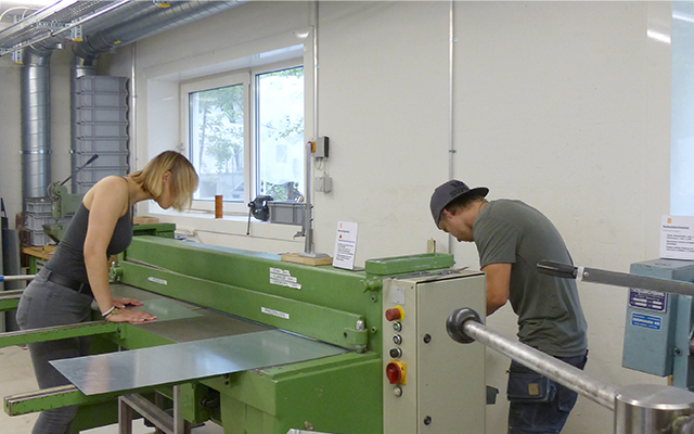 Die Studierenden produzieren in unserer Metallwerkstatt alle möglichen Schlosser- und Metallarbeiten. Von grossen Rahmenkonstruktionen für Installationen über mechanische Bauteile und Mode-Accessoires bis hin zu anspruchsvollen Metallguss Objekten.