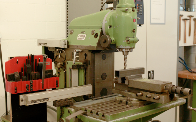 Mechanische Arbeiten können auf der Drehbank sowie auf einer Fräsmaschine unter Mithilfe von digitalen Messsystemen bearbeitet werden.