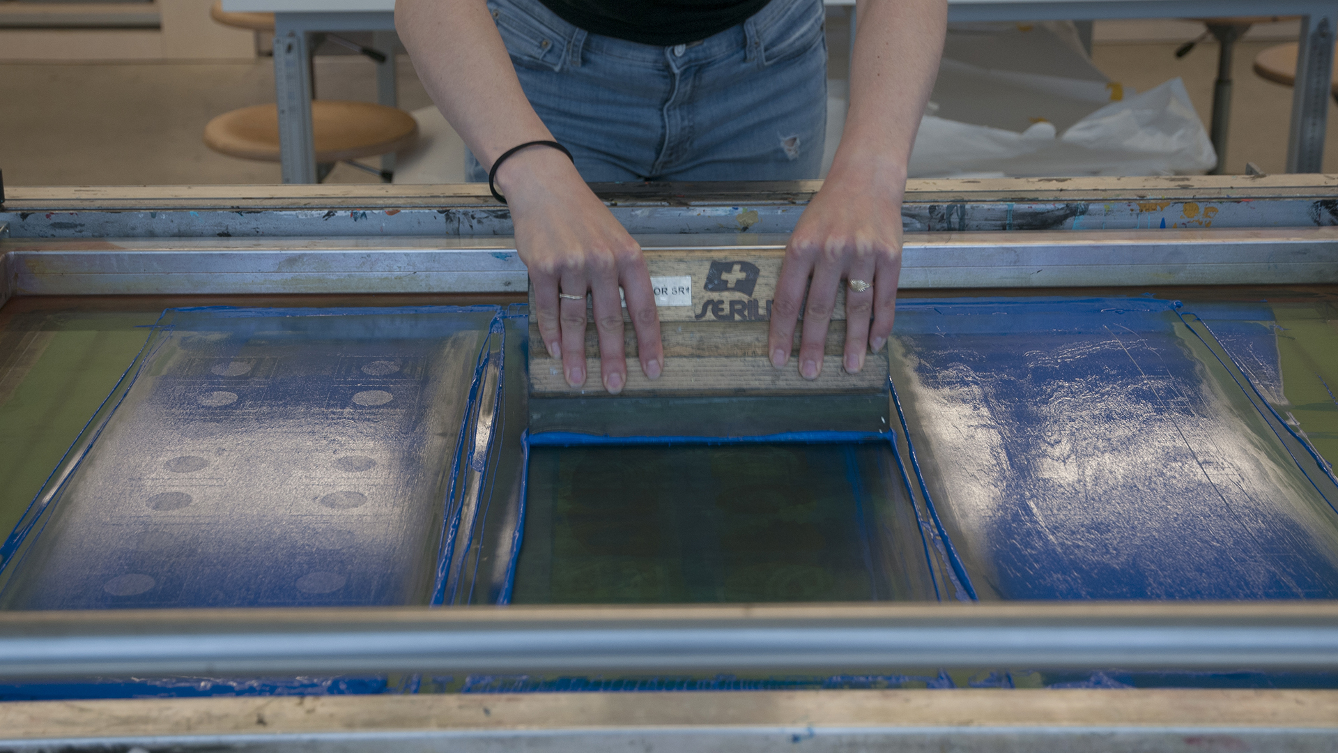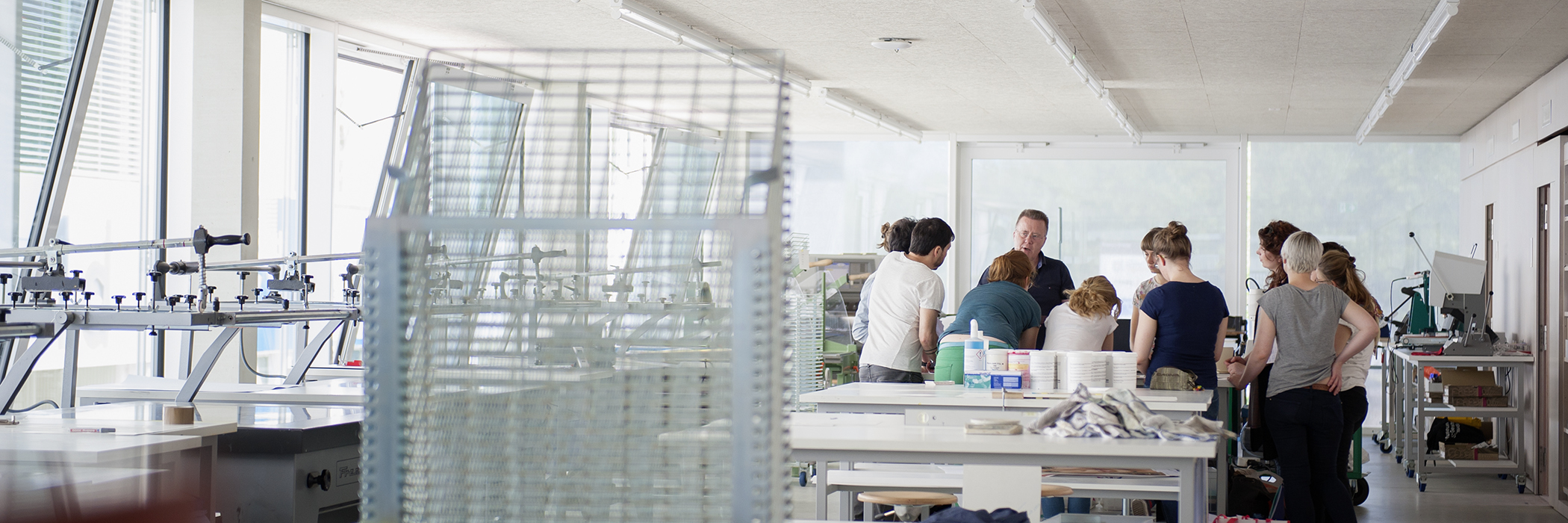 Neben der Optimierung und Ausgabe der Belichtungsvorlagen lernen die Studierenden, Siebe für die Beschichtung vorzubereiten (dazu gehören das Beschichten, Belichten, Auswaschen) sowie das Drucken auf Papier, Karton und Textilien. Ebenso werden verschiedene Farbsysteme wie das Mischen von Druckfarben oder das Experimentieren mit verschiedenen Farbkontrasten.