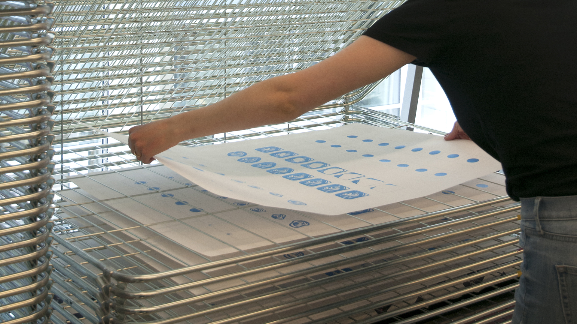 Nach den Einführungs-Workshops kennen die Studierenden die grundlegenden Prozesse des Siebdrucks. Kleinere Projekte können dann selbstständig geplant und realisiert werden. Dazu gehört zum Beispiel, die Belichtungsvorlagen vorzubereiten und diese fachgerecht auf das Sieb zu übertragen.