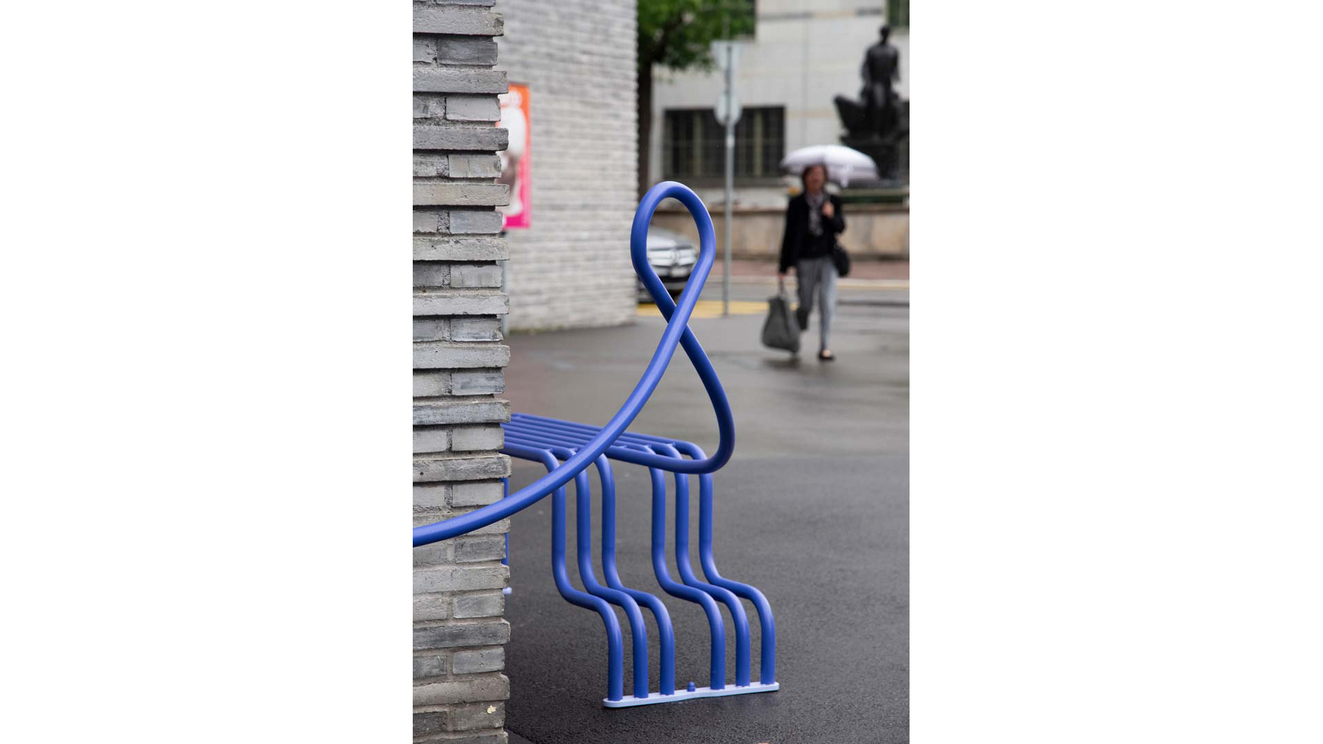Wann hast du das letzte Mal gespielt? «Komo» ist ein interaktives Sitzobjekt für den öffentlichen Raum, das spielerische Begegnungen zwischen Menschen fördert. Erwachsene nehmen sich immer weniger Zeit zum Spielen, sind zunehmend gestresst und sozial isoliert. «Komo» macht es möglich, Hindernisse des urbanen Raums zu überwinden, Räume für spontane Interaktionen zu schaffen und Neugier zu wecken. Ein Sprachrohr verbindet die durch Hindernisse getrennten Sitzbänke und ermöglicht spielerische Kommunikation mit Freund:innen, Familie oder noch unbekannten Menschen. Durch eine freundliche Formensprache, farbliche Präsenz und akustische Funktion regt «Komo» zum Entdecken, Austauschen und Spielen an.