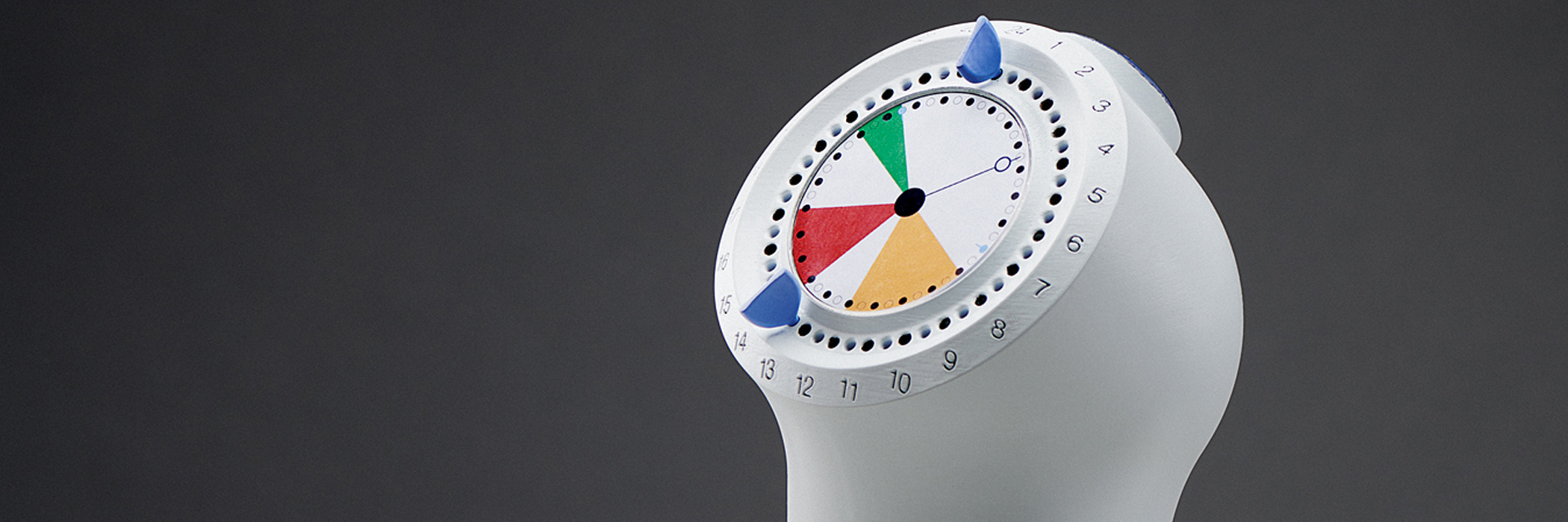 Unser Zeitsystem ist komplex aufgebaut und oftmals unverständlich für Menschen mit einer kognitiven Beeinträchtigung. Die Uhr «mio» bietet Menschen mit Trisomie 21 über eine alternative Zeitdarstellung Zugang zu unserem Zeitsystem und unterstützt sie bei ihrer Wochenplanung. An der Tischuhr modellieren sie die Termine der Woche. Dazu können sie Symbole linear anordnen und Pins einstecken. Diese Termine werden auf dem 24-Stunden-Zifferblatt auf der Tisch- sowie der Armbanduhr durch Farbe und Symbole visualisiert. Die Armbanduhr lässt sich an der Tischuhr laden und zum Tragen am Gehäuse zusammenstecken. Das erleichtert das An- und Ablegen auch bei eingeschränkter Feinmotorik.