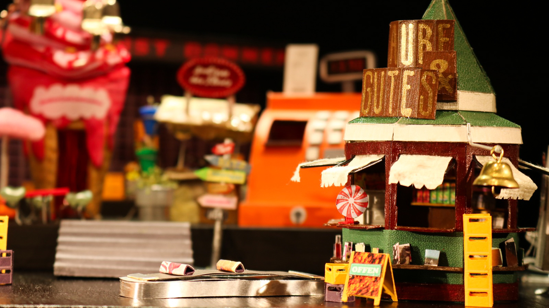 Bühnenbildentwurf zum Theaterstück mit Musik von Bertolt Brecht, Kurt Weill und Elisabeth Hauptmann