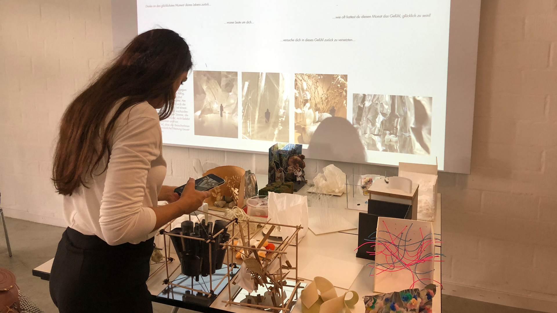 Diese exemplarischen Fragestellungen konnten von den Studierenden des BA-Studiengangs Innenarchitektur und Szenografie durch eigene Fragen ersetzt, erweitert oder reduziert werden.