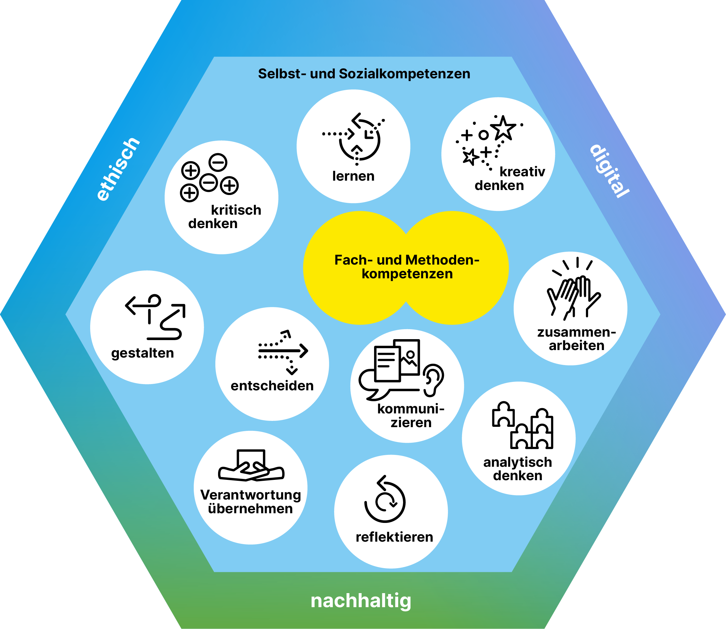 Selbst- und Sozialkompetenzen: Zukunftskompetenzen wie kritisches Denken, Reflexionsfähigkeit, Verantwortungsbewusstsein und wirksame Kommunikation