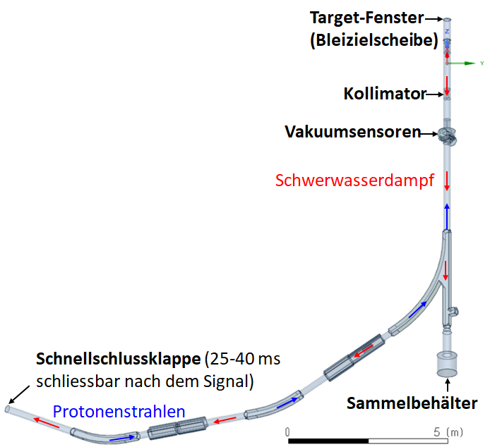 Neutronen werden durch beschleunigte Protonen erzeugt, indem diese auf ein Blei-Target treffen. Dieses wird mit Schwerwasser (D2O) gekühlt. Ohne Kühlung würde das sogenannte Target-Fenster, das mit Protonen von knapp einem Megawatt Leistung bestrahlt wird, innert Sekunden schmelzen und zerstört werden. Sollte es zu solch einer Beschädigung kommen, würde das radioaktiv belastete Kühlwasser in das Hochvakuum (10-4-10-5 Pascal) des Protonenstrahlrohres einströmen. Aufgrund des Hochvakuums in der Rohrleitung würde das eindringende flüssige Schwerwasser blitzschnell verdampfen und sich ausbreiten. Um eine radioaktive Kontaminierung grosser Bereiche des Protonenstrahlrohres zu verhindern, sind zwei Schnellschlussklappen in der Protonenstrahlführung ca. 23 Meter vom Target-Fenster entfernt eingebaut. Die Schnellschlussklappen sollen innerhalb 25-40 Millisekunden (ms) komplett schliessen. 1991 wurde am PSI zur Beurteilung bereits eine 1D-Berechnung mit Massen- und Energiebilanz durchgeführt. Mit der rasanten Entwicklung der numerischen Tools in den letzten Jahrzehnten ist es daher heute sinnvoll, mit CFD (Computational Fluid Dynamics) die Situation mit 3D-Simulationen neu zu bewerten.