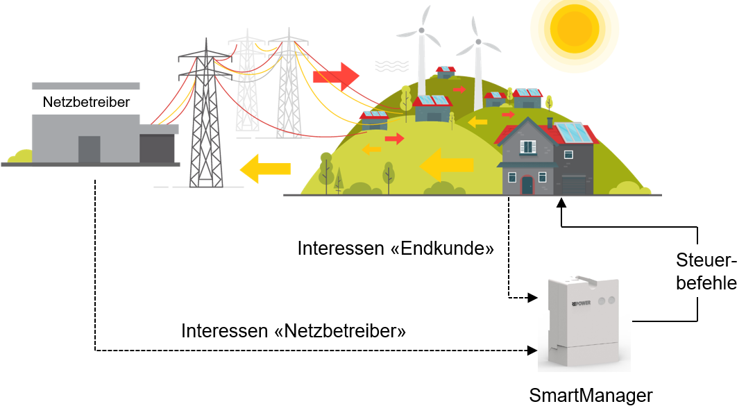 Abbildung 1: Gewichtete netz- und kundendienliche Optimierung flexibler Lasten mit dem «Smart Manager».
