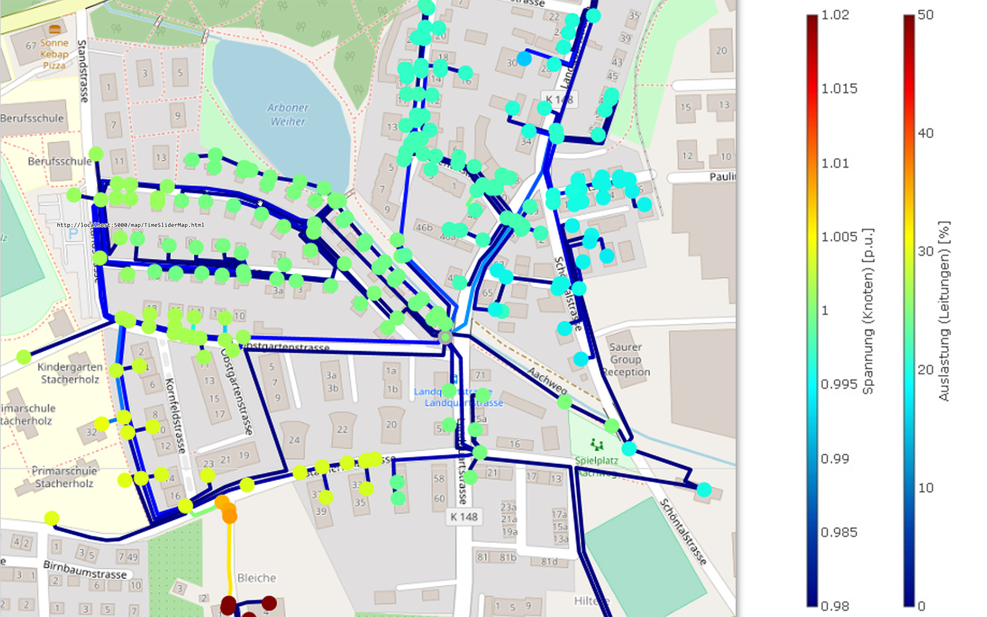 - Visualisierung des Netzzustandes mit Fokus auf die für einen Verteilnetzbetreiber relevanten Grössen