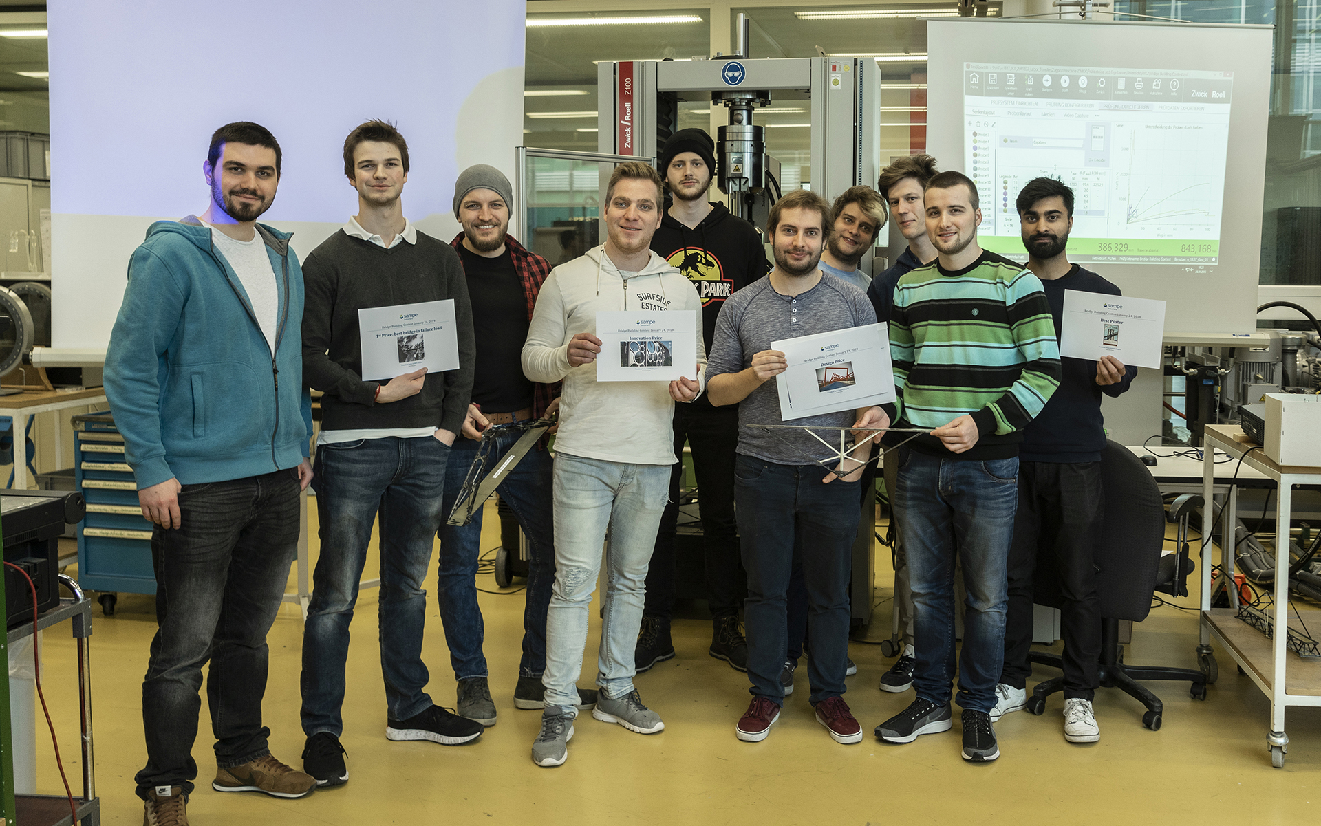 17 Gruppen a 3-4 Studierende der ganzen Schweiz haben am diesjährigen Wettbewerb teilgenommen. Am Finale im Brugg-Windisch eruierten die Studierenden die stabilste Brücke mittels eines 3 Punkt Biegeversuchs. Gewonnen hat das Team «Pontem Lastrode» der Hochschule für Technik Rapperswil. Ihre Brücke hielt eine Kraft von 3790 Newton aus.