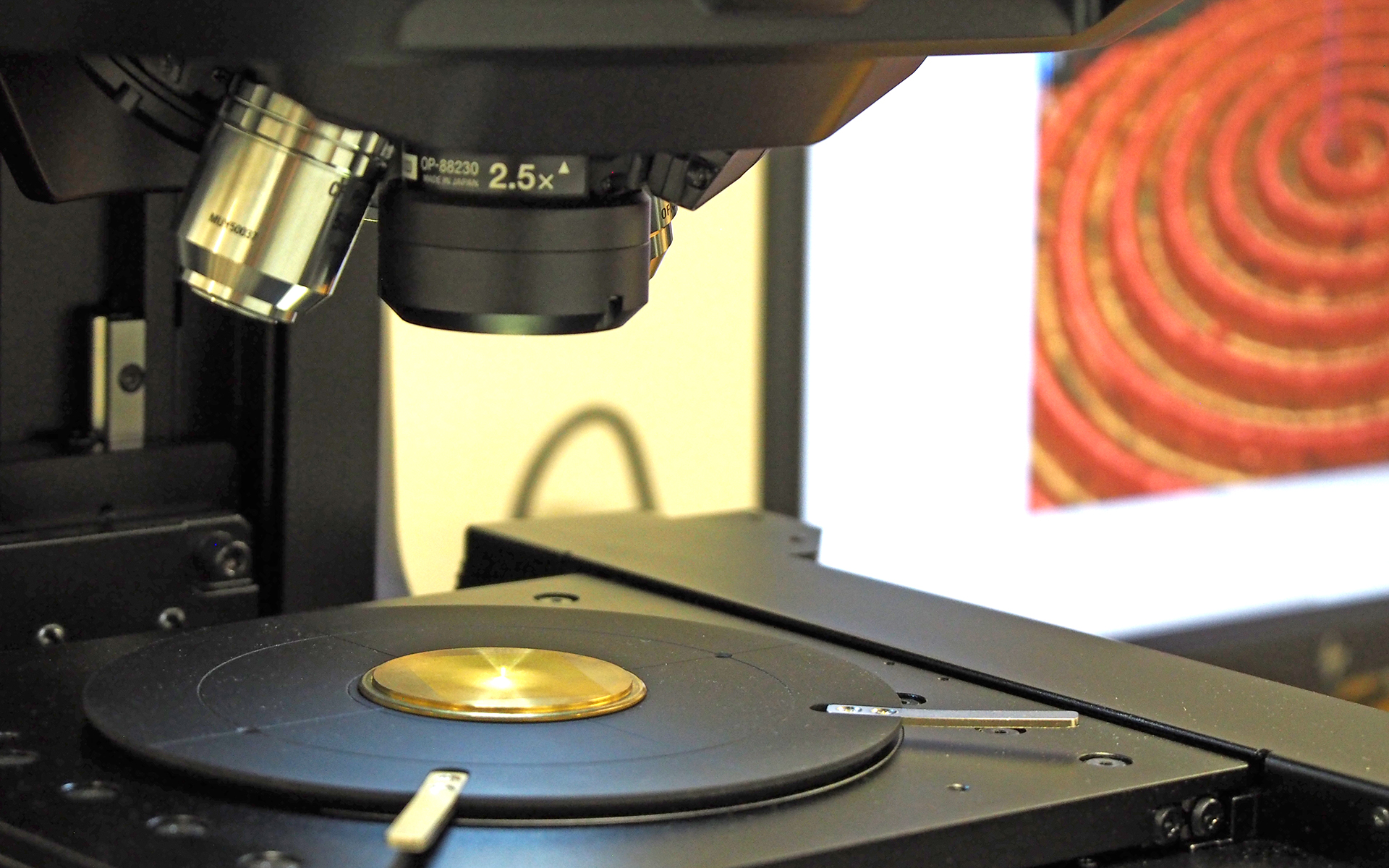 Ausserdem hat das Institut diverses Zubehör angeschafft, um das Mikroskop aufzuwerten und die Einsatzmöglichkeiten zu erweitern. So steht das Mikroskop auf einer mächtigen, etwa 300 kg schweren Granitplatte, die Vibrationen minimiert, und es ist mit einem Vakuumtisch ausgestattet, um die untersuchten Proben während der Messung fixieren zu können, was insbesondere bei der Untersuchung von dünnen Folien wichtig ist.
