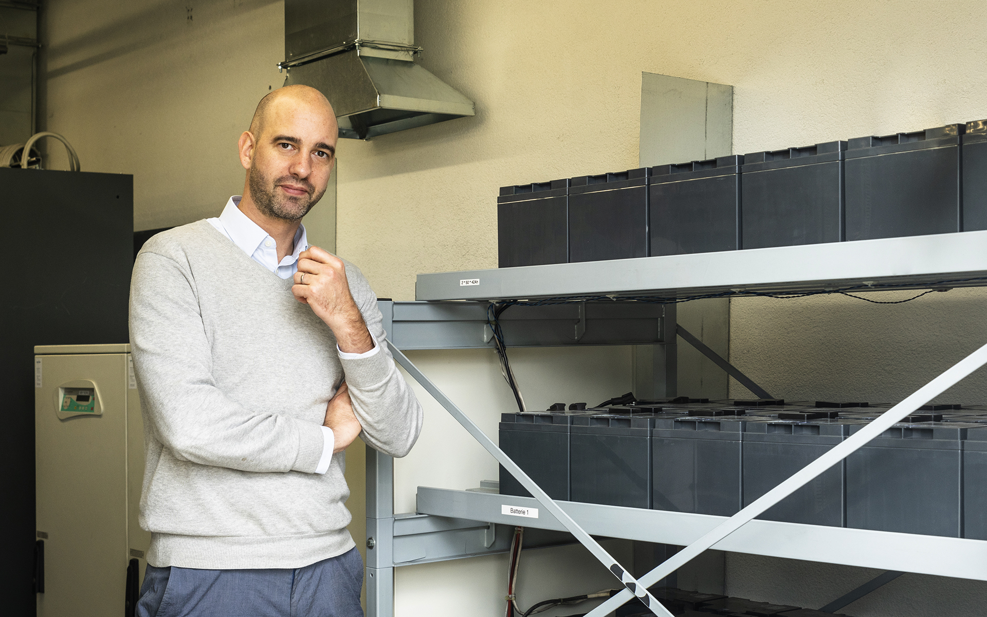 Die Lüftung im Raum dröhnt, Geräte klicken und knacksen. Michael Bösch steht vor einem Regal mit 72 Blei-Akkus. Die schwarzen Kisten – welche grosse Ähnlichkeit mit Autobatterien aufweisen – lagern im Stellwerk des Bahnhofs Brugg. «Dank diesen Akkus funktioniert das Stellwerk auch bei einem Stromunterbruch», erklärt der Professor für Ressourceneffizienz an der Fachhochschule Nordwestschweiz FHNW. Eine Stunde lang liefern die 12-Volt-Akkus Elektrizität, sollte es mal zu einem Unterbruch in der Stromversorgung kommen.