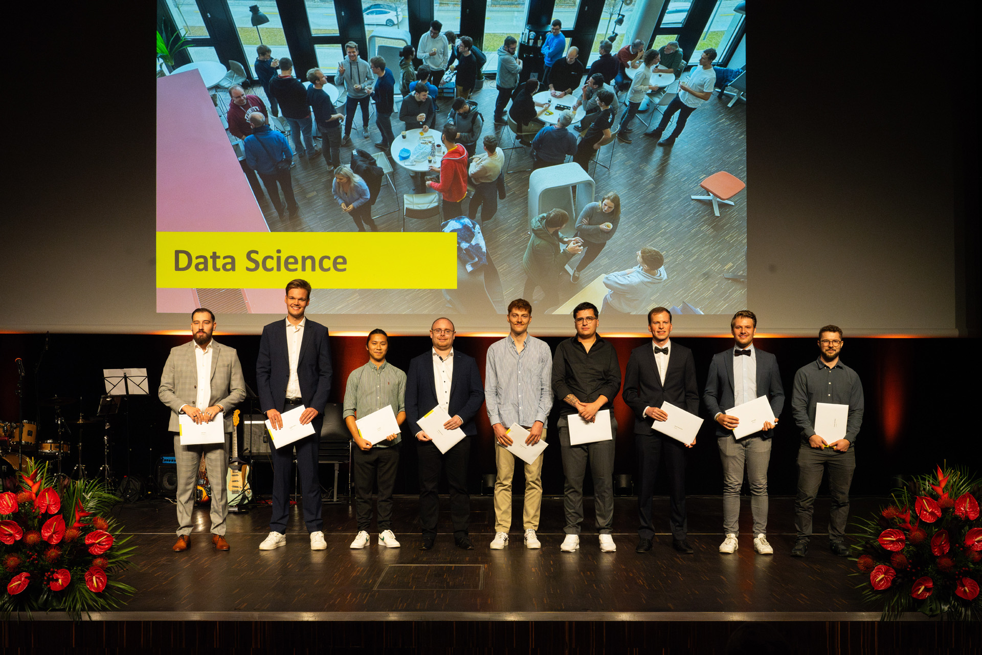 Im Anschluss an die Übergabe der Diplome wurden die Diplompreise verliehen, mit denen in jedem Studiengang die bestbewerteten Abschlüsse ausgezeichnet werden. Der regionale Siemens Excellence Award, ein mit 4000 Franken dotierter Spezialpreis, ging in diesem Jahr an einen Absolventen des Studiengangs Systemtechnik: Joël Alfeld zeigte mit seiner Arbeit, dass künstliche Intelligenz nicht nur ein abstraktes Konzept ist, sondern ganz handfesten Anwendungen in der Industrie dienen kann – beispielsweise in der Zementproduktion, in der oftmals Altreifen als Brennstoff zum Einsatz kommen. Alfeld entwickelte eine KI-basierte Reifenerkennung, mit der der Einsatz von Altreifen effizienter gesteuert werden kann, und somit der Energieverbrauch als auch die Emissionen in der Zementproduktion massgeblich reduziert werden.