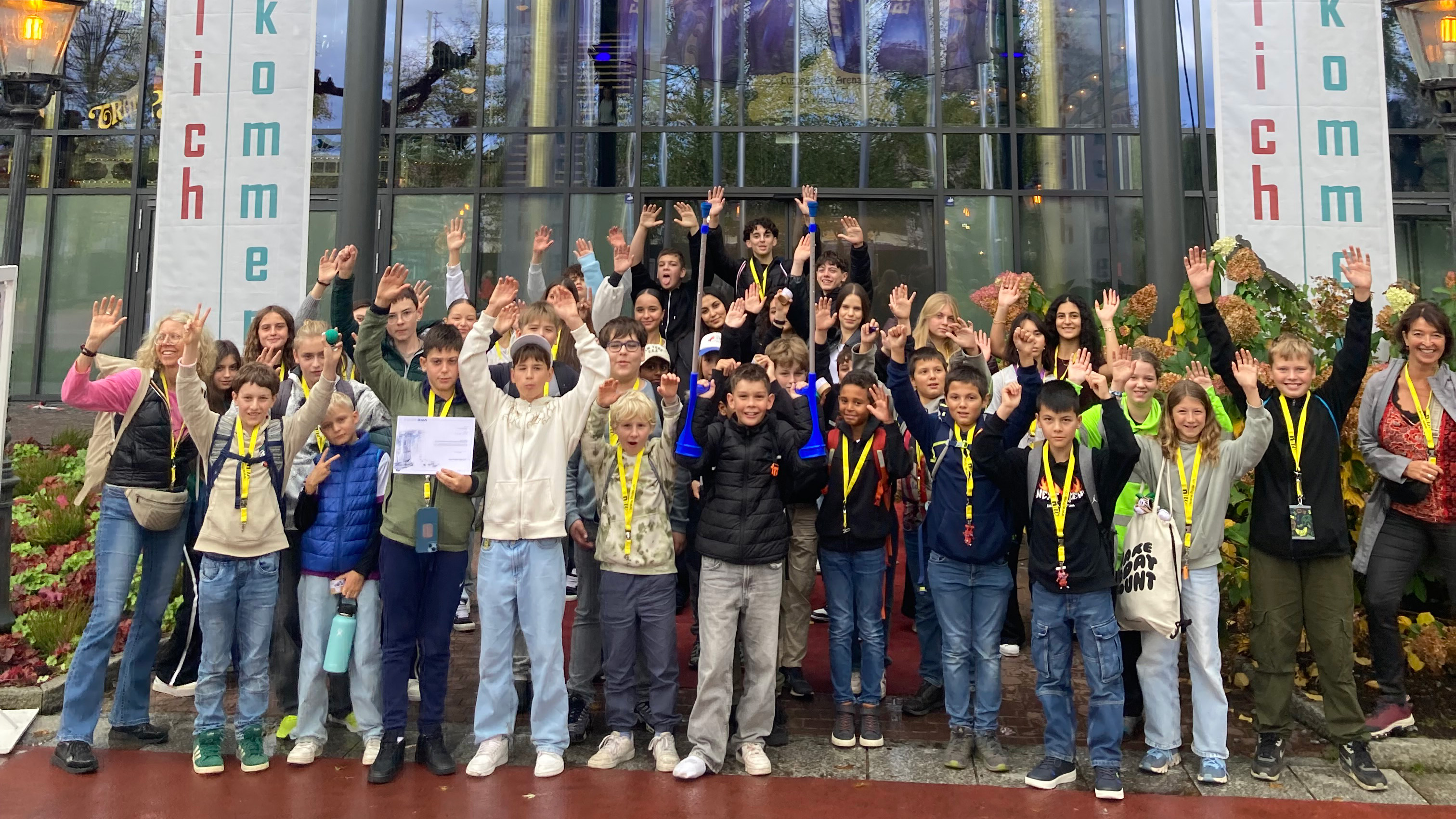 Vor dem Eingang des Confertainment Centers entstand ein gemeinsames Erinnerungsfoto der Schweizer Delegation – ein Symbol für Neugier, Teamgeist und Begeisterung für Technik.