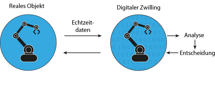 Genau. Der digitale Zwilling kann nicht nur messen und regeln, sondern besitzt die nötige Intelligenz, um aufgrund der Daten und Datenmuster Entscheidungen zu fällen – was ein normaler Regelkreis nicht macht. Er kann zudem Prognosen erstellen. Er ist sozusagen ein Vordenker, der immer überlegt: „Was wäre, wenn?“