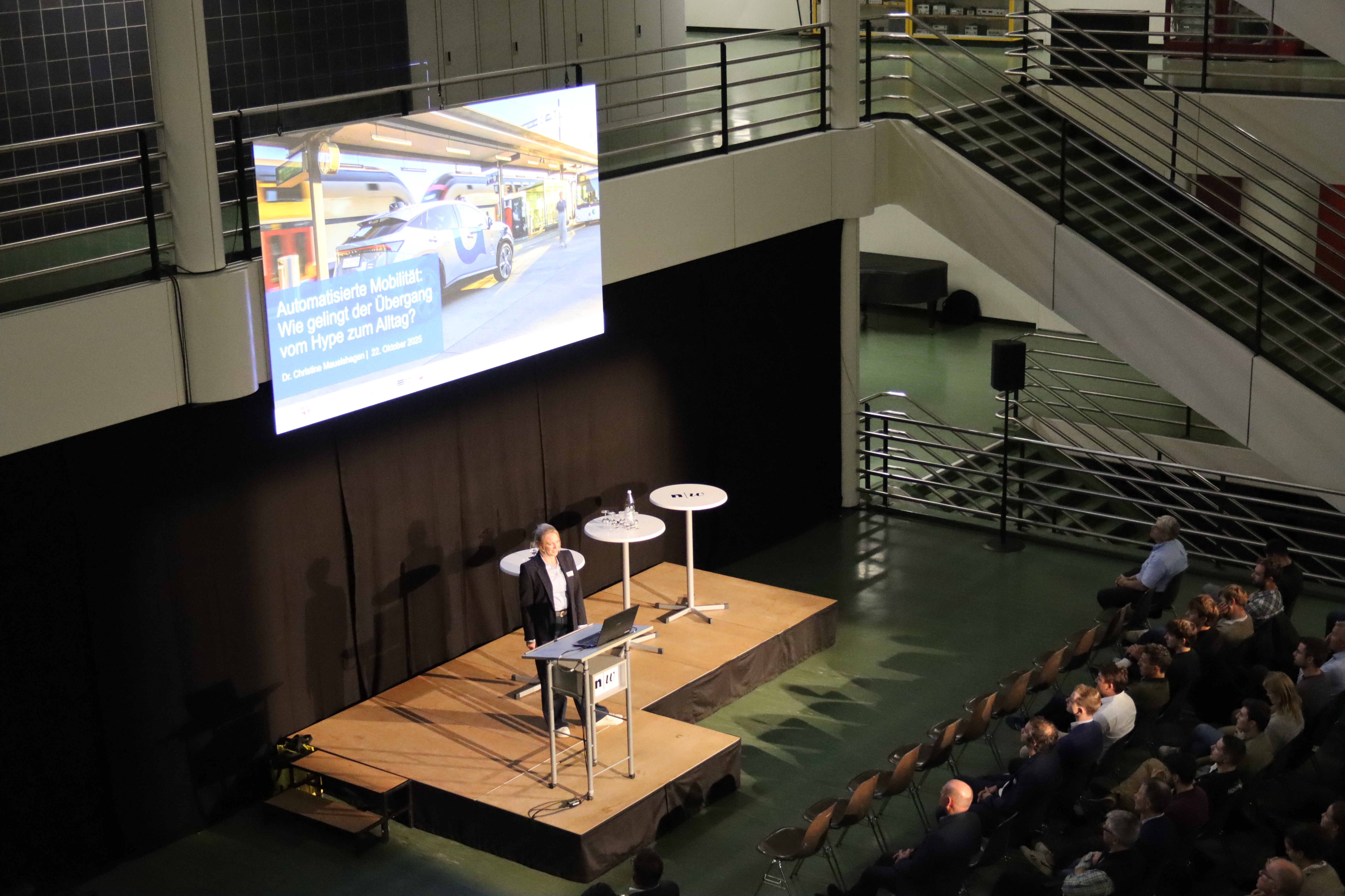 Dr. Christine Mauelshagen, Dozentin an der Hochschule für Technik und Umwelt FHNW und Vorstandsmitglied des Swiss Transit Lab, gab Einblicke in aktuelle Schweizer Pilotprojekte im Bereich automatisierte Mobilität. Am Beispiel des Pilotgebiets Furttal erläuterte sie, wie automatisierte Fahrzeuge Schritt für Schritt in reale Verkehrssysteme integriert werden. Sie zeigte auf, dass technische Fortschritte zunehmend einsatzfähige Lösungen ermöglichen, gleichzeitig aber Fragen zu Betriebssicherheit, rechtlichen Rahmenbedingungen und gesellschaftlicher Akzeptanz weiterhin zentrale Herausforderungen darstellen.