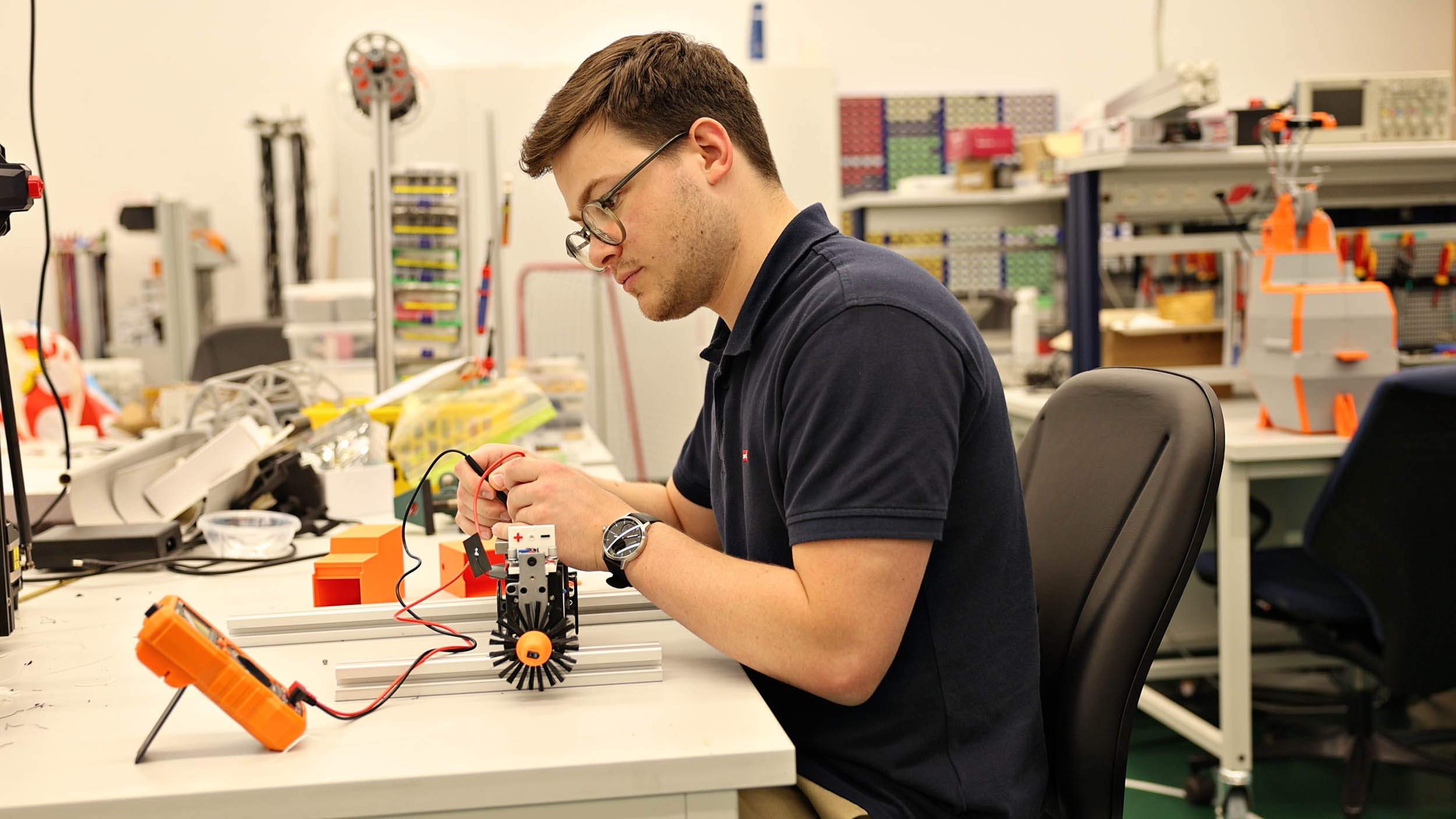 Die Vertiefungsrichtung richtet sich an Studierende, die Freude an analytischem Denken und abstrakten Modellen haben, aber nicht nur am Computer sitzen möchten. Sie arbeiten im Labor, entwickeln Ideen an Maschinen und Programmen – vielleicht sogar mit einem Lötkolben in der Hand – und werden aktiv in Industrieprojekte eingebunden. In praxisnahen Challenges können sie ihre Fähigkeiten direkt an realen Problemstellungen erproben und interdisziplinäre Lösungen entwickeln.